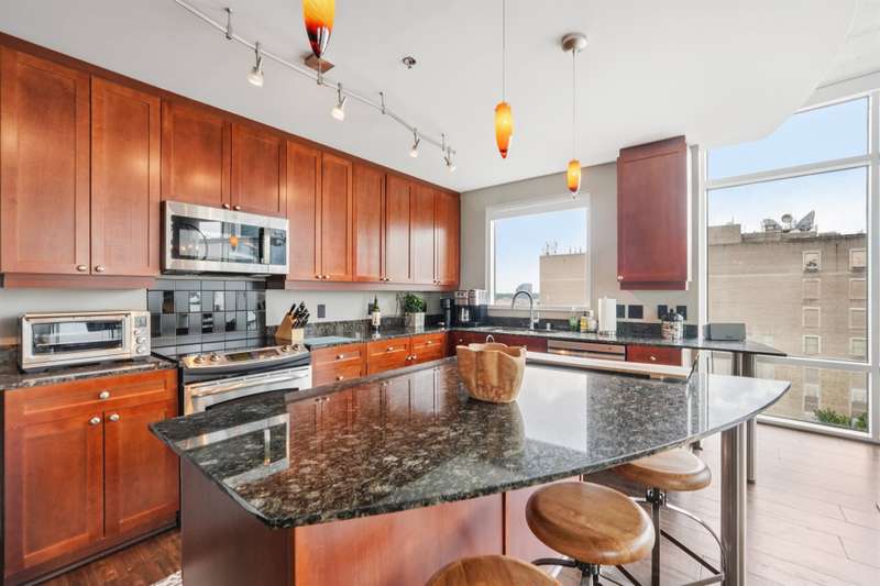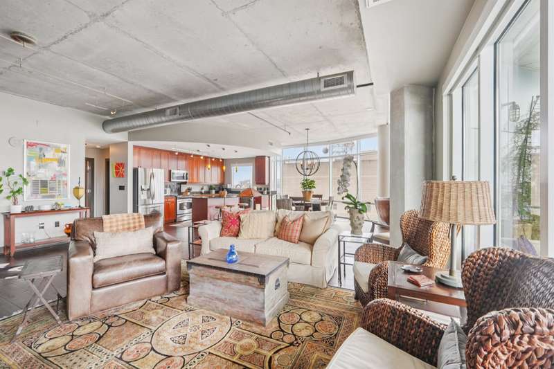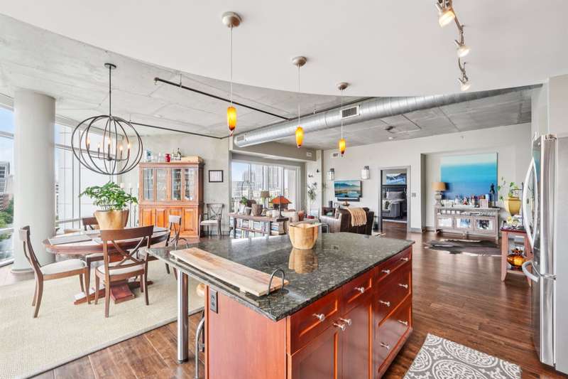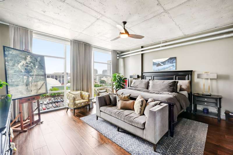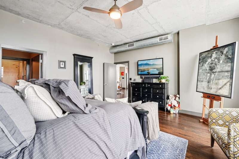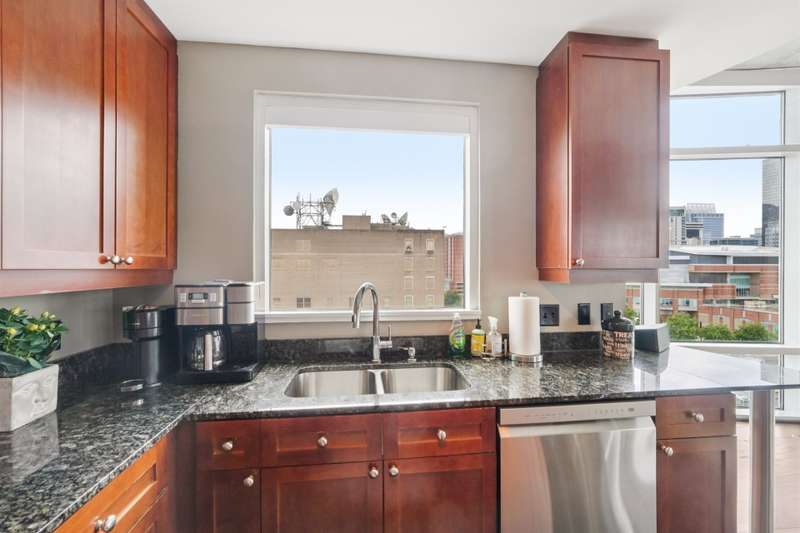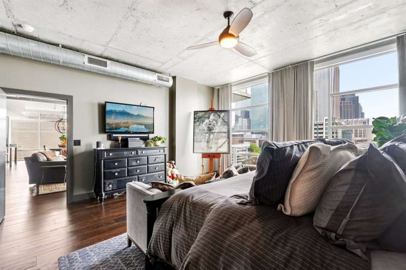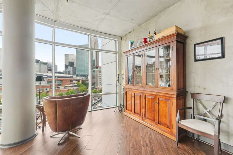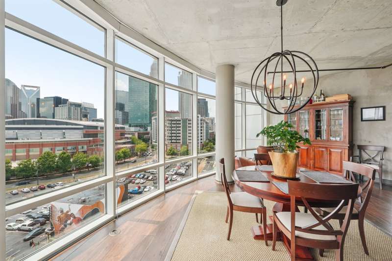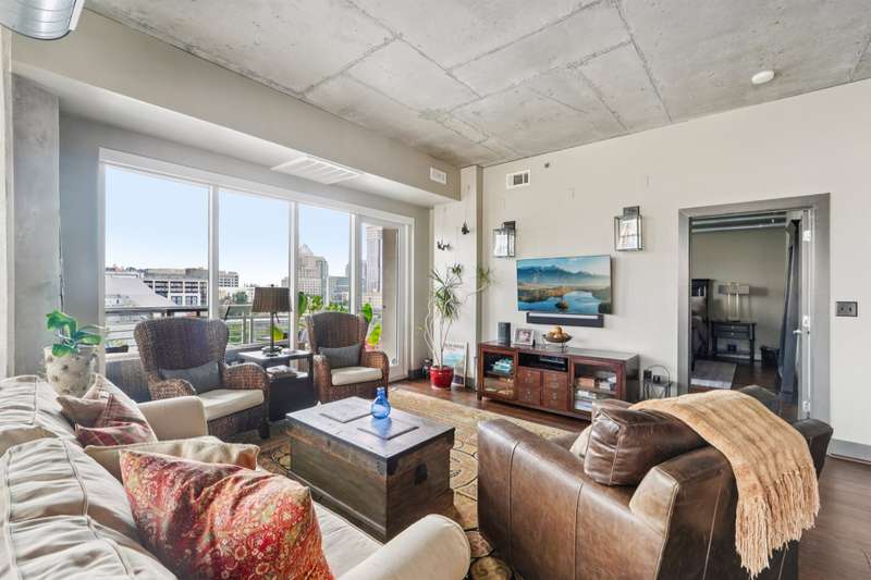 Iconic curved wall of floor to ceiling window and 10 foot ceilings make this a WOW view of the skyline and sunsets. This is a rare opportunity to own the ultra-desirable "01" unit on a high floor. Features include an oversized balcony with a dramatic views. Courtside was the first high-rise residential tower in Center City and has some hard to find features including above the typical square footage and room sizes. The Primary bedroom has a wall of floor to ceiling windows and is huge by city standards. The second bedroom and separate office are also very large. The open living area will shock you with its size. Newer hardwood floors shine and are a quality upgrade. Custom walk-in closet and tile bathroom features are highlighted in the primary ensuite bath. This is a secure entry building with2 assigned parking spaces in the secure parking deck. Other amenities include a rooftop terrace and Amazon HUB on site for extra convenience. Just one block from a light rail stop.