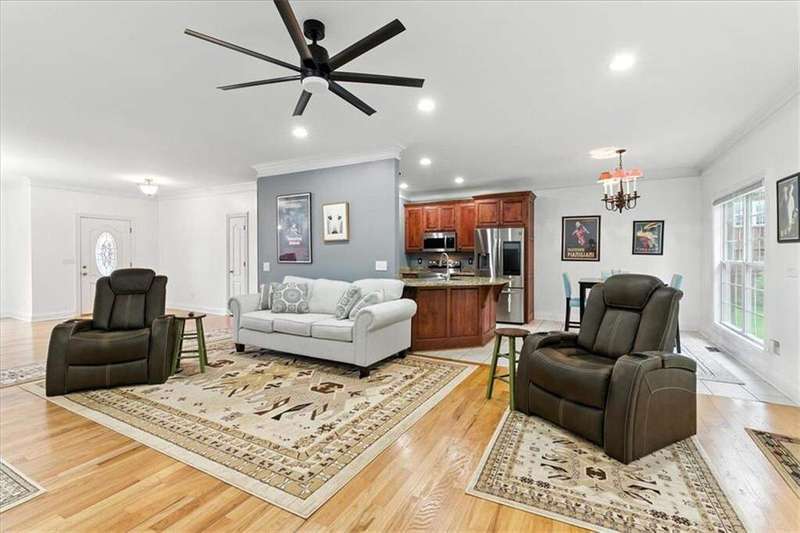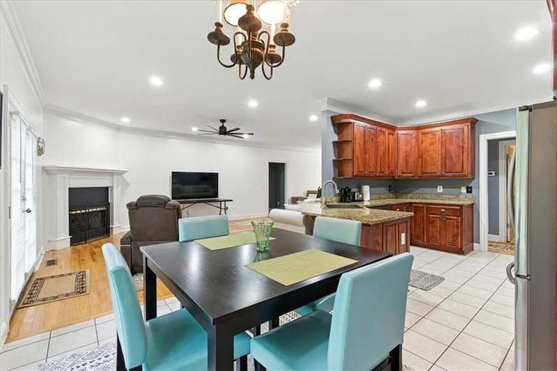 Welcome to this beautiful 4-sided brick home on a spacious 0.47-acre lot in the desirable Mountain Brook Subdivision. Inside, you'll find stunning hardwood floors, 9-foot ceilings, and a large great room with a cozy fireplace. The kitchen is a chef's dream with granite countertops, cherry cabinets, a breakfast area, and a formal dining room. The oversized master suite features a soaking and jetted tub, separate shower, walk-in closet, and double vanity. Step outside to a fully fenced backyard with a rear patio-perfect for relaxing or entertaining. Additional highlights include a two-car garage that's drywalled with 12' ceilings and an 8' door, a new dual-fuel HVAC system (2023), a 2.5-year-old water heater, and a fully encapsulated crawl space (2023). Located in a quiet, walkable neighborhood, this home blends comfort, style, and peace of mind.