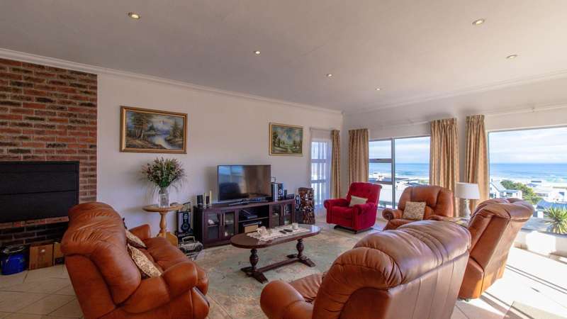 Nestled in a tranquil cul-de-sac, this remarkable property offers forever sea views and the soothing sound of crashing waves. Enjoy the unique privacy of a green area bordering the back and one side of the home. The spacious living area, complete with a built-in braai, is perfect for entertaining and offers breathtaking sea views. The well-appointed kitchen features ample cupboard space. Both the living area, balcony, and two of the main house bedrooms, as well as the separate flatlet, boast stunning ocean vistas. Wake up to the serene beauty of the ocean from the main and guest bedrooms, both offering sea views and the sound of waves. These bedrooms seamlessly open onto the balcony, inviting the fresh sea air in. The home features a total of three spacious bedrooms, all with built-in cupboards. Downstairs, a one-bedroom flatlet provides an excellent opportunity for extra income through holiday or long-term rentals. This versatile space also enjoys its sea views. A convenient paved driveway on the side ensures easy access to the first floor, making it simple to deliver braai wood and groceries. Completing this exceptional property is a spacious garage with room for three vehicles, along with dedicated storage and laundry areas.