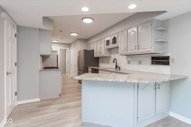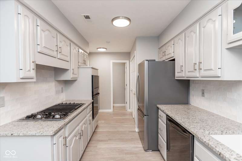 Beautiful Condo with tons of updates. New HVAC system, paint and flooring throughout this home. As you enter the home you are wowed by the 17' raised ceiling in the great room and a gas fireplace. The great room carries into the dining room and is open to the kitchen. Enjoy the breakfast bar too. Kitchen with fresh look and new granite counter tops. Built in Gas range with downdraft system and a grilling grate for inside grilling. New refrigerator, built-in oven, microwave, and dishwasher finish out this updated kitchen. Private covered patio off dining room is great for outdoor grilling. Upstairs has 3 great bedrooms. Bedroom 1 at the top of the stairs is very large and has its own private deck. Hall bathroom has updates as well. Primary bedroom is very nice size, has big walk-in closet and Primary bathroom has new double sink vanity and new free-standing tub. Garage is a 2 car plus an extra 9x5 bump in the back (great workshop or storage)