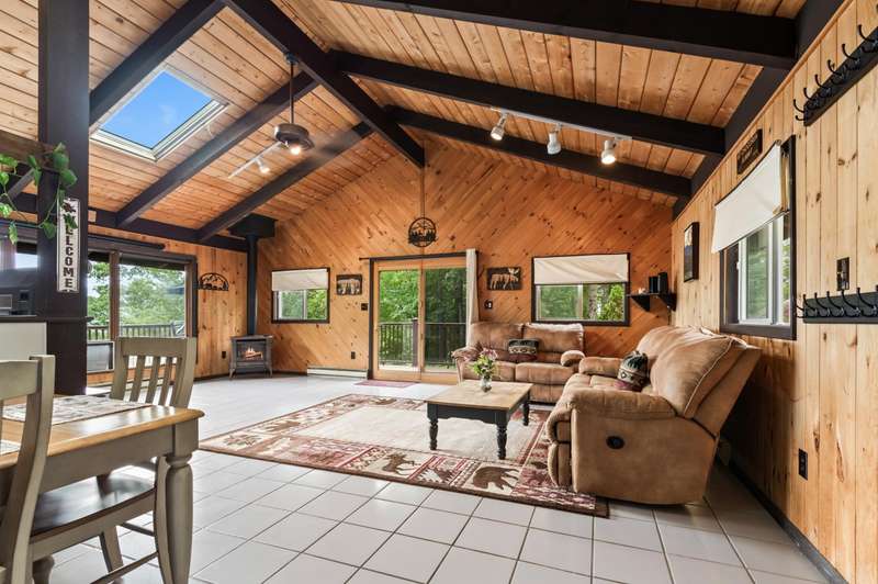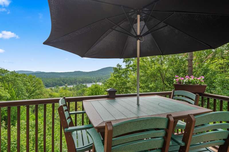 Relax, Soak in the sun and enjoy the breathtaking view! Sparkling clean and meticulously maintained, this 4-bedroom, 1.5-bath home in the heart of Eidelweiss Village is the perfect mountain and lakeside escape. The open-concept main level features soaring ceilings and abundant natural light, creating an inviting space for relaxing or entertaining. Step outside to the expansive deck—a true highlight—perfect for enjoying your morning coffee or hosting evening gatherings while taking in breathtaking sunrise views over the surrounding mountains and Pea Porridge Ponds. Enjoy access to multiple sandy beaches on the ponds, ideal for swimming, sunbathing, or launching your kayak for a peaceful paddle. With year-round recreation at your fingertips, you’re just minutes from King Pine Ski Area, boating on Silver Lake, and all the outdoor adventures the Mount Washington Valley has to offer. Just 15 Minutes to Americas favorite ski town: North Conway with world class recreation, shopping & dining. Whether you're seeking a full-time home or a seasonal retreat, this property checks all the boxes.
