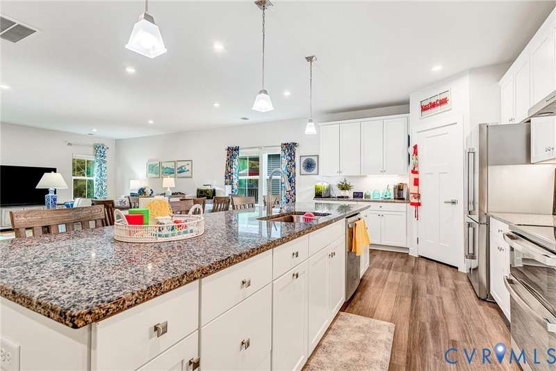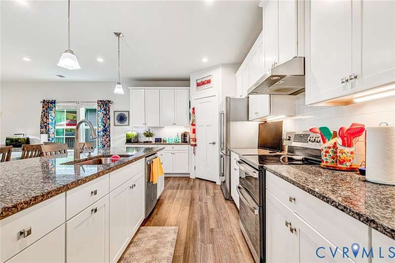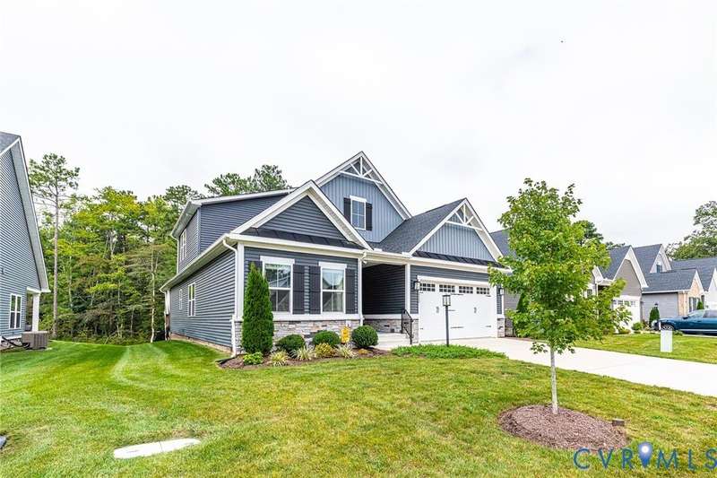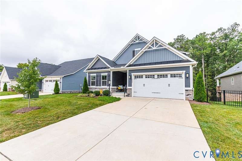 Welcome home to this Charming Craftsman Style Ranch conveniently located in the no maintenance 55+ Community of Britlyn. This spacious home offers almost 2,700 square feet, 4 bedrooms and 3 full baths as well as a large covered rear porch, paver patio and fenced yard backing to woods. Upon entry, you will be welcomed with Luxury Vinyl Plank flooring throughout the first level. The gourmet kitchen has Granite countertops, tile backsplash, a large island with breakfast bar seating for five, soft close cabinets, stainless steel appliances, double oven, walk-in pantry, and pendant and recessed lights. There is a seamless transition into the dining area and family room, which has enough space to entertain while still feeling cozy. The owner's suite is a true retreat offering a tray ceiling with crown molding, recessed lights, walk-in closet, an en-suite bath with dual vanity and shower. Upstairs boasts an open loft area, the 2nd bedroom with an en-suite full bath with single vanity and tub/shower combo plus a walk-in attic with plenty of storage space. The 3rd and 4th bedrooms are on the first level and include recessed lights, large closets and LVP floors. Other notable features include plantation blinds throughout, electric car charger, two car attached garage, double width concrete drive, walk in attic, natural gas heat/central air, and vinyl siding and windows. Enjoy relaxing in the evenings on the rear covered porch or grilling on the rear patio overlooking your private rear lot. This is a truly a must see!