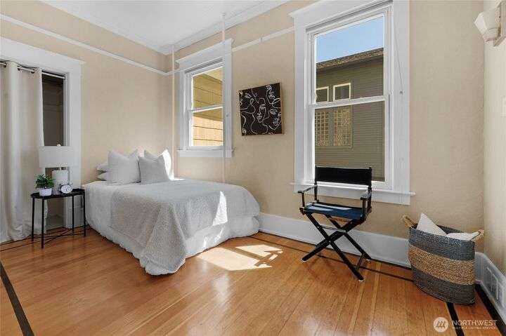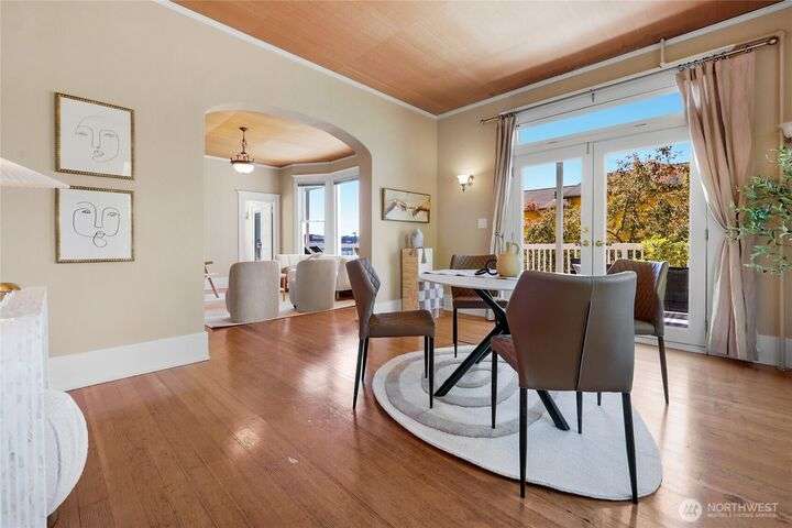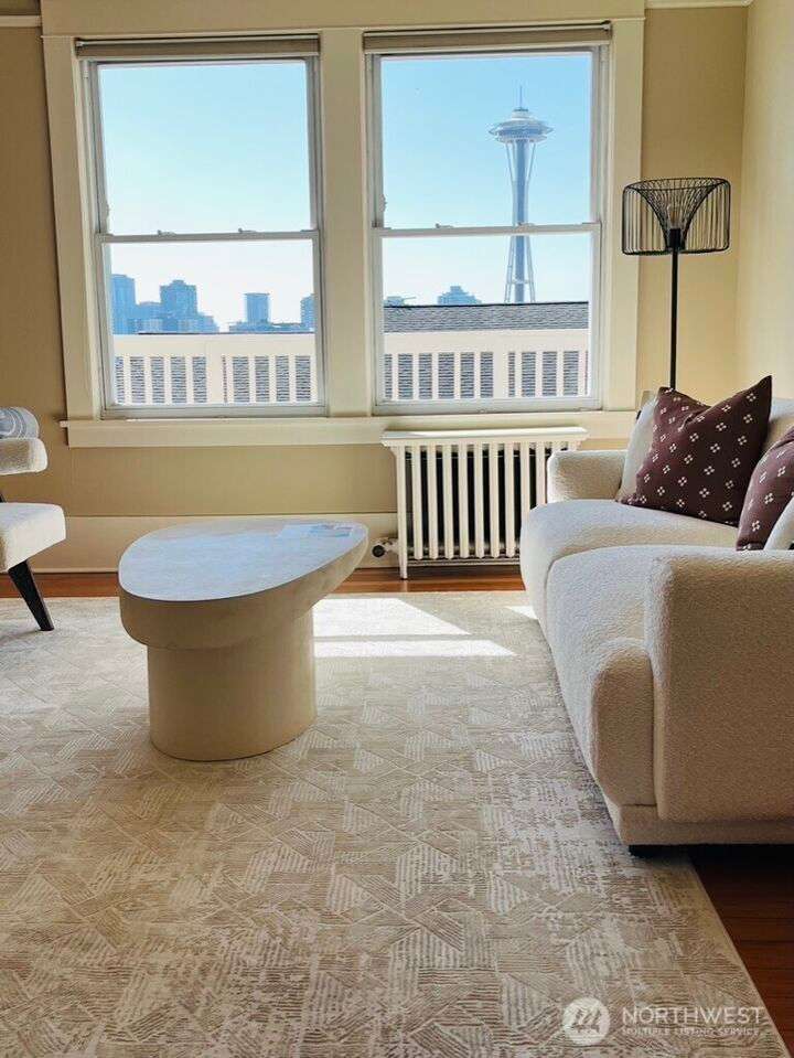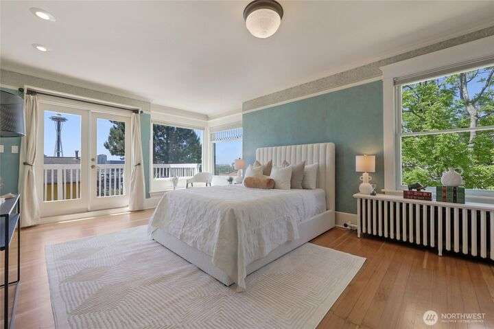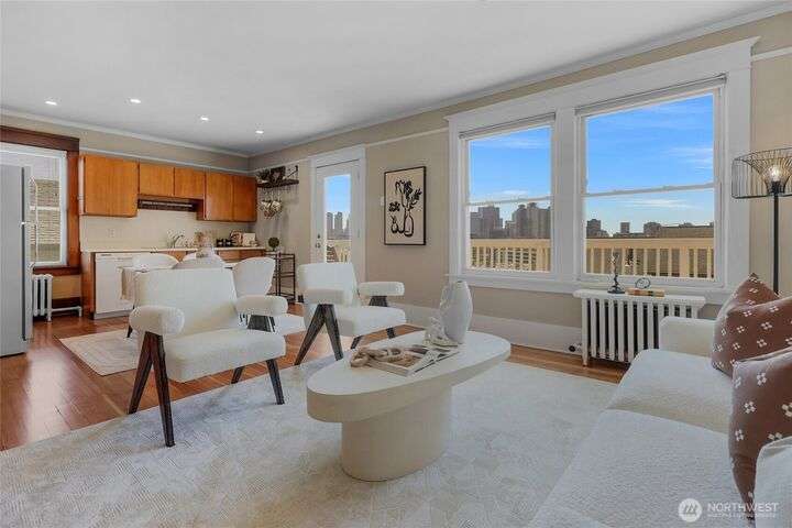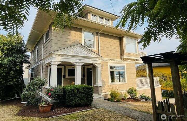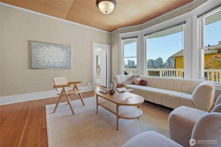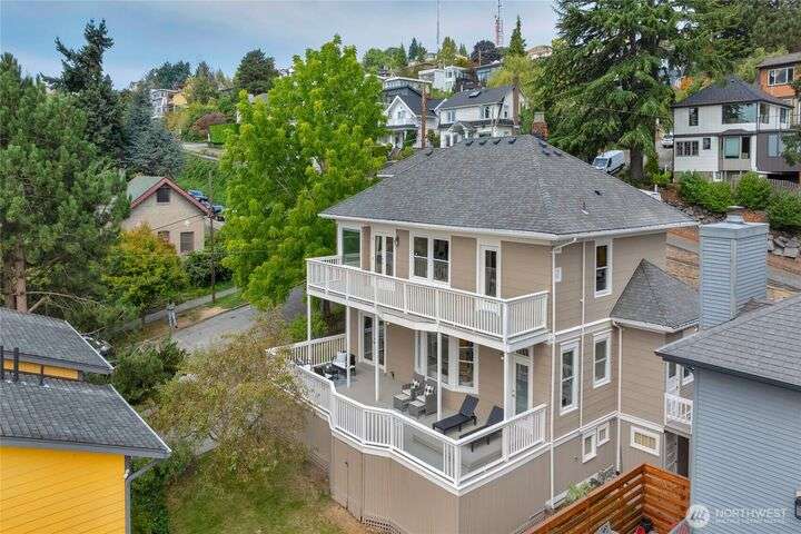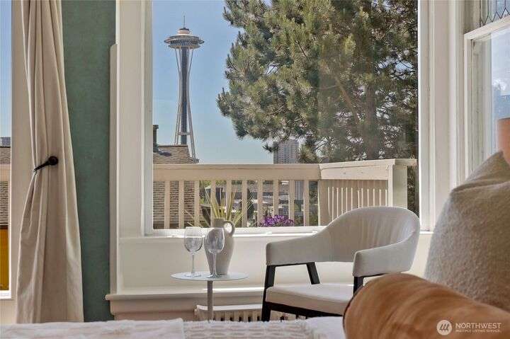 A rare offering in Queen Anne, this charming 1904 duplex captures stunning Seattle skyline views from its perch on an expansive 5,000+ SF corner lot. Fresh paint inside and out. Newer roof, refinished wood floors (up), and all systems inspected. Inspections and receipts available. Potential 3rd floor suite in walk-up attic. 500+ SF decks extend living space. This home offers flexibility — live in one unit and rent the other or restore it to its roots as a single-family residence. Fully rented for 15 years; see related multi-family listing for financials. Maintained by meticulous homeowner. Just steps to Seattle Center, shops, dining, and SLU tech. This property combines location, views, and history in one of Seattle’s premier neighborhoods!