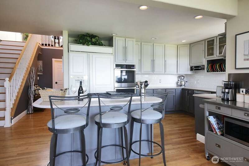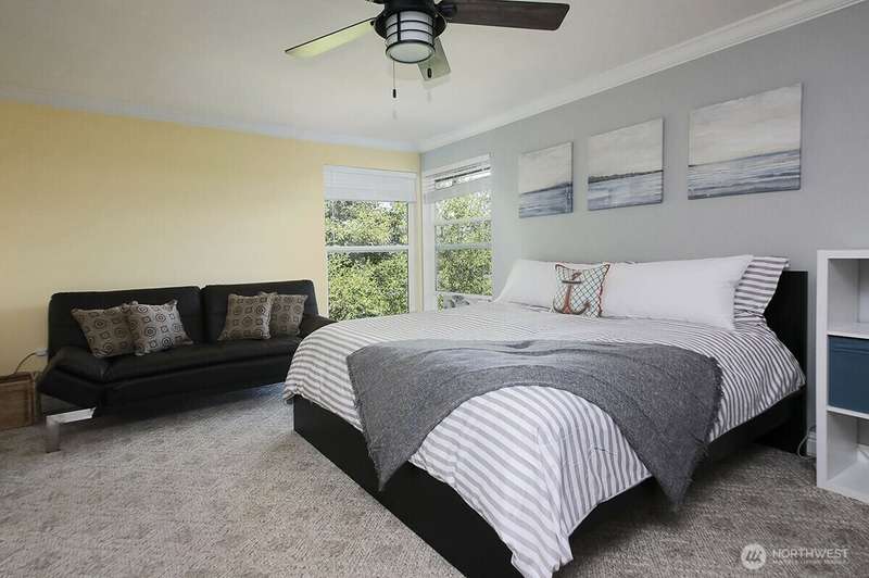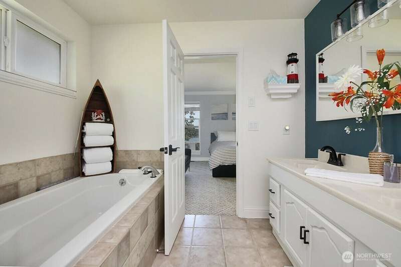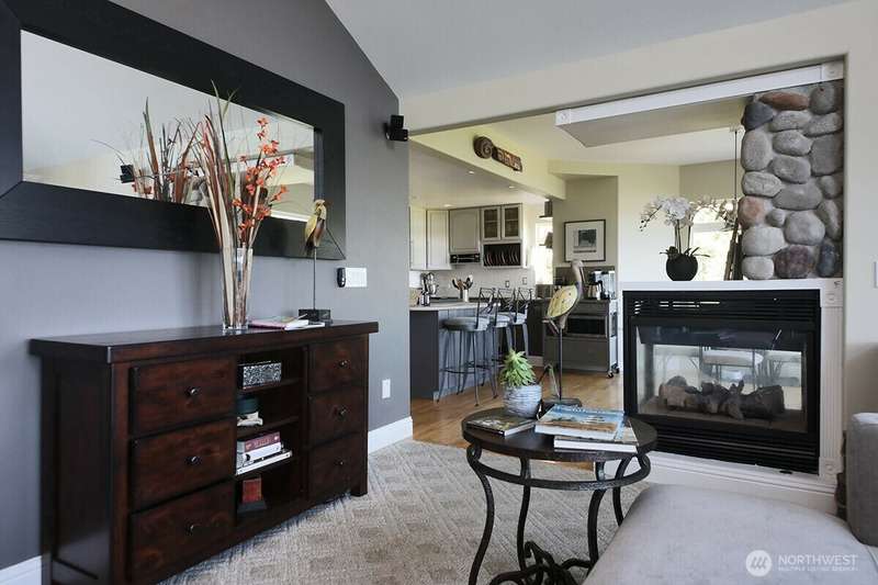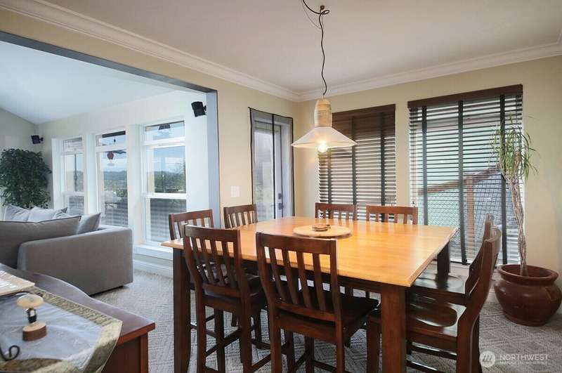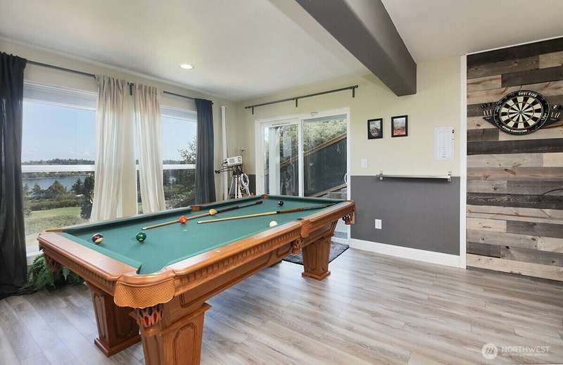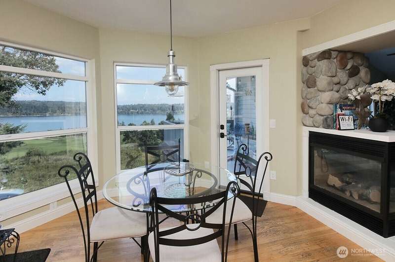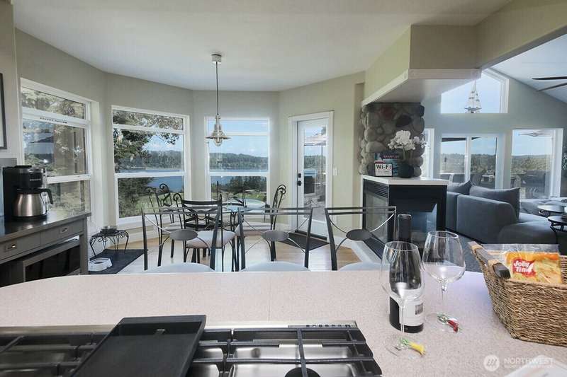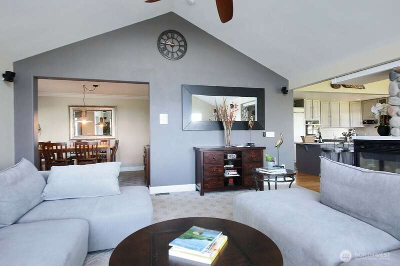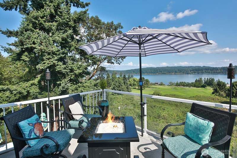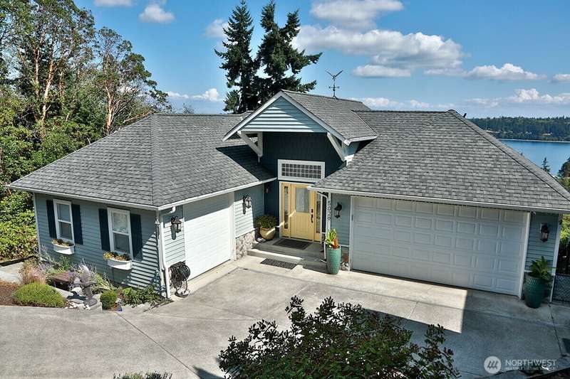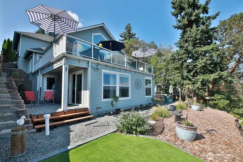 Experience exceptional island living at this expansive Holmes Harbor residence. Wake to breathtaking panoramic views of the harbor & the majestic Cascade Mtns. The main living area is great for entertaining guests, & extends to the deck, an ideal setting for BBQs while soaking in the vista. This generous home features two primary suites, providing comfort & privacy for all. Enjoy the warmth & ambiance of the propane fireplace. A dedicated gym space or versatile flex room, along with two attached garages, offers abundant room for hobbies & storage. As a successful VRBO, this property has excellent income potential. Nestled on a tranquil street, this property delivers a captivating blend of serenity, flexibility, & stunning natural beauty.