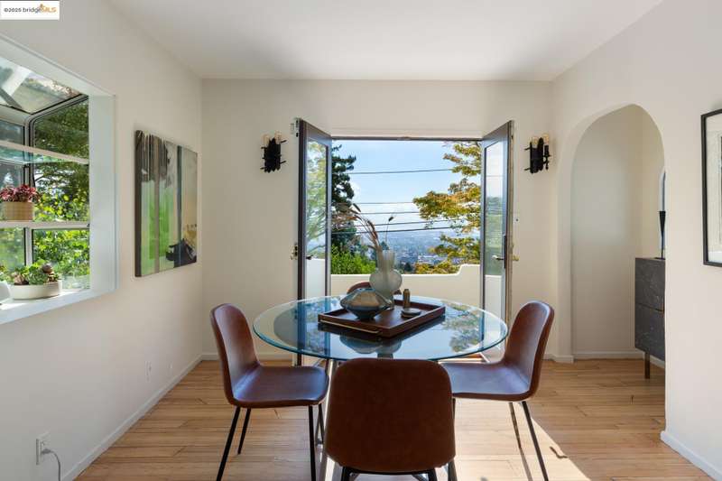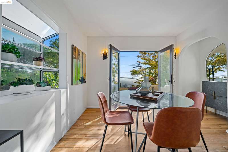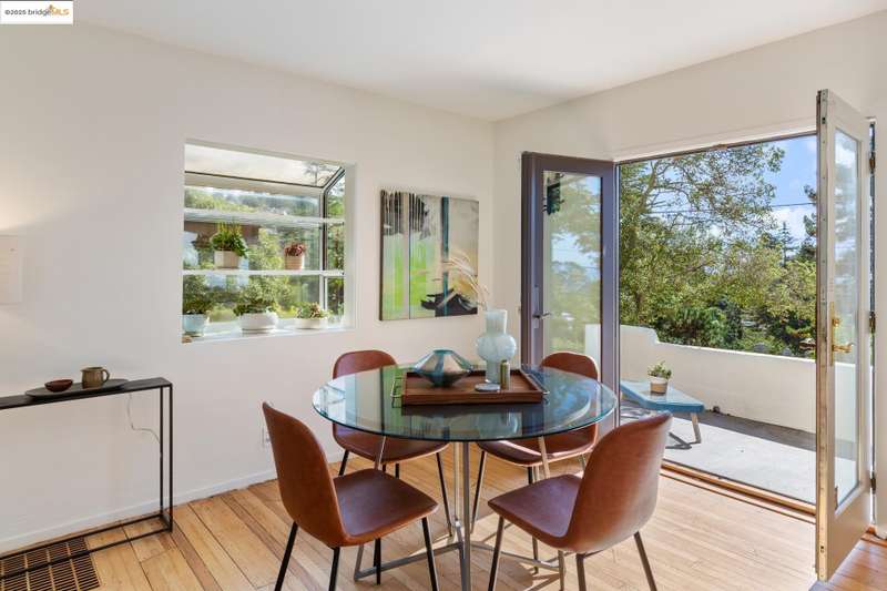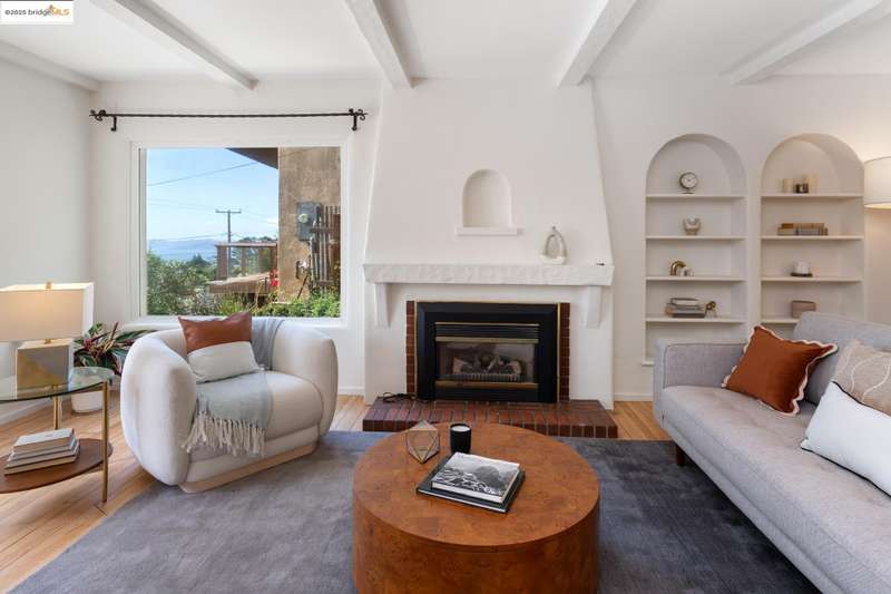 Welcome to this lovingly well maintained home in the heart of the Berkeley Hills, offering 1,734 sq. ft. of living space on a 5,200 sq. ft. lot (per public records). From the spacious sitting room, outdoor patios, and primary bedroom, you'll enjoy stunning views of San Francisco, the Bay and The Golden Gate Bridge. The galley kitchen flows into a bright, sun-filled dining room that opens directly onto one of two front patios, creating an effortless indoor-outdoor connection. Newly refinished hardwood floors run throughout, adding warmth and charm to every space. Upstairs, three bedrooms include ample closet space; two of the bedrooms have balconiesone with west-facing views and one east-facing the back yard. A one-car garage provides direct access from the street, and an additional parking space sits conveniently at the front entrance steps. The kitchen and bathrooms are ready for a new owner's vision, offering the opportunity to add modern updates while preserving the home's character. Come see why this Berkeley Hills gem offers the perfect blend of comfort, potential, and world-class views. PSL COMPLAINT! Bath Count differs from public record. OFFERS TUESDAY 10/21 BY 2:00 PM
