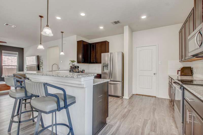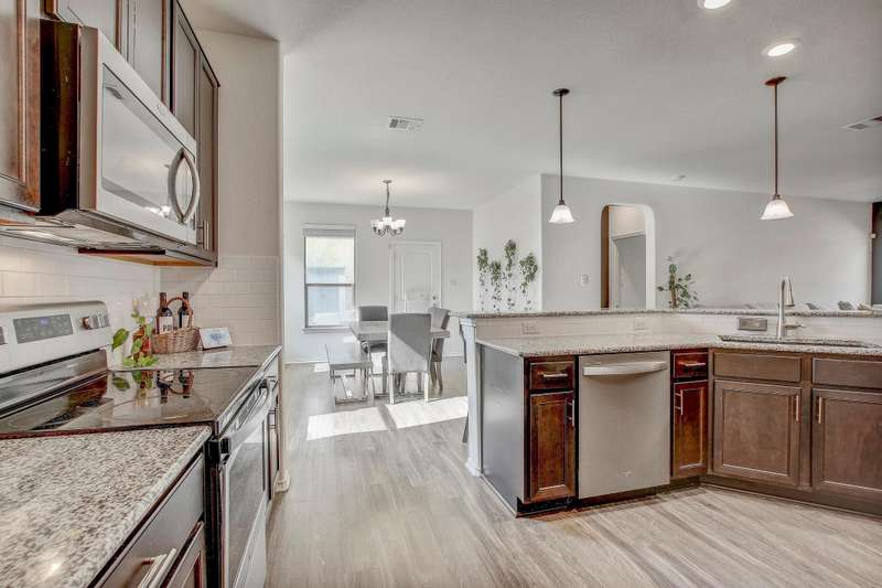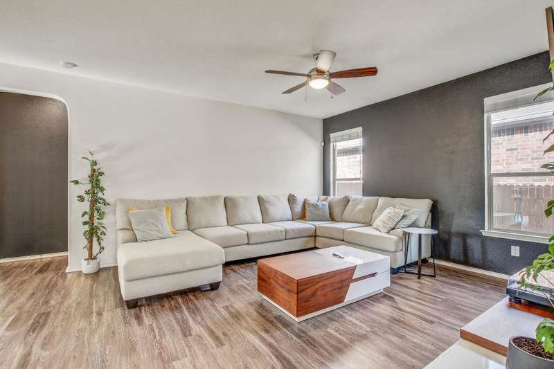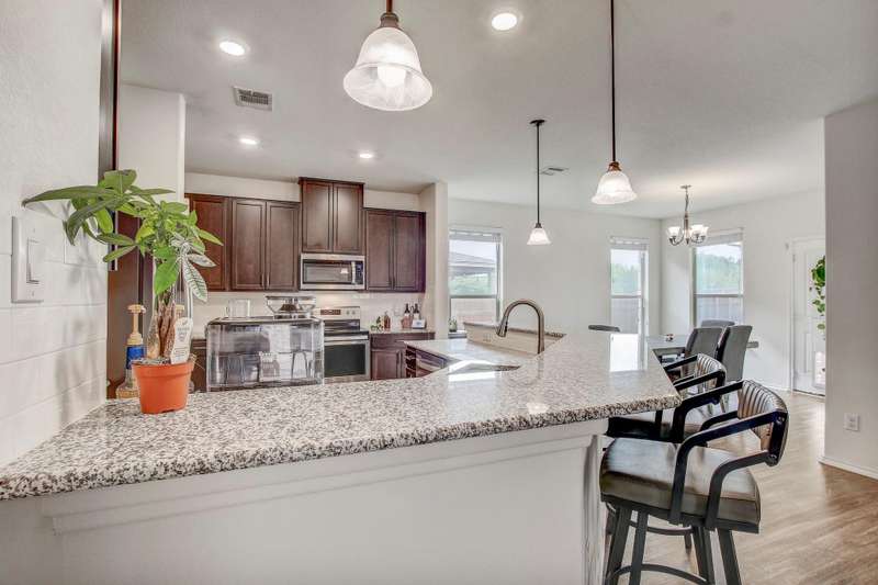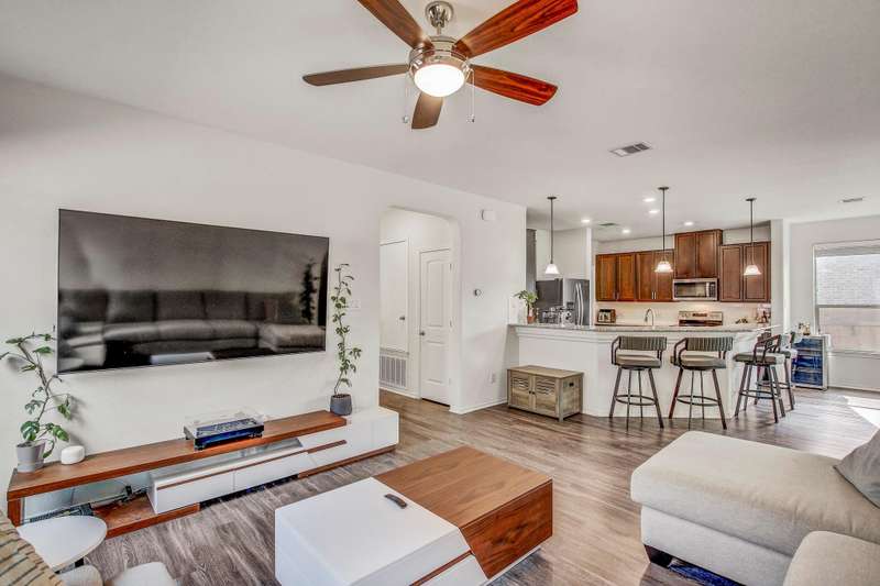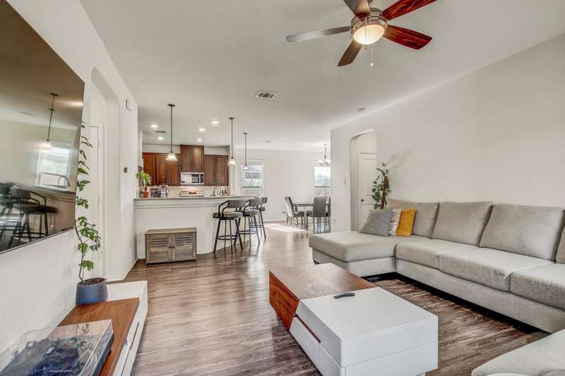 PRICED TO SELL!!!! Welcome to your dream home in the heart of Pflugerville! Tucked away in a quiet, family-friendly neighborhood, this beautifully maintained 3-bedroom, 2-bath gem offers the perfect blend of comfort, style, and convenience. Just a short walk to Pflugerville High School and Timmerman Elementary, plus easy access to nearby parks and walking trails, this location is ideal for families and outdoor enthusiasts alike. The front exterior of the home showcases beautiful upgraded stonework, enhancing its curb appeal with an elegant and elevated look. Step inside to discover an open-concept layout with soaring 9-foot ceilings that create an airy, inviting atmosphere. The flat-panel maple cabinets in rich Espresso and sleek Arctic Pearl granite countertops in the kitchen bestow the home with a modern yet warm ambiance. The spacious layout flows seamlessly from the kitchen into the great room and dining area, making entertaining effortless and easy. The private primary suite is a relaxing retreat, complete with a large walk-in closet, a garden tub, and a separate glass-enclosed shower. The large two car garage is equipped with a split A/C system, making it a versatile space, perfect for a home gym, workshop, or additional living area. Sitting on over a quarter-acre lot, this home offers plenty of room to roam in the private, tree-lined backyard. Relax under the covered patio, enjoy quiet mornings in the tranquil rock garden, or take advantage of the large shed for extra storage. This is more than just a home to live in, it is a sanctuary to thrive in.