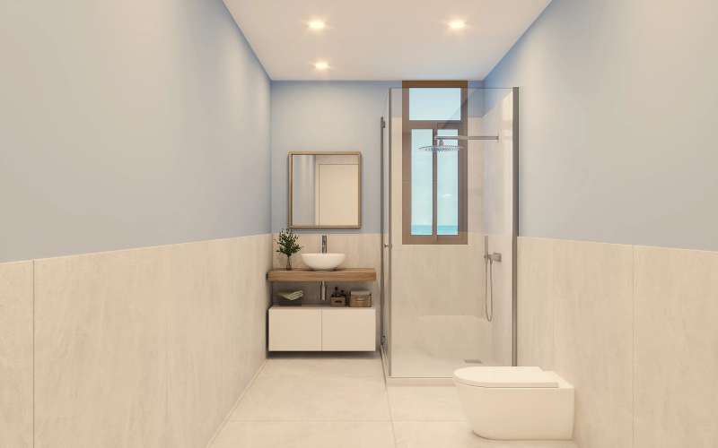 Each apartment offers around 90 m² of modern living space with 3 bedrooms and 2 bathrooms. The interiors are fully furnished and equipped with premium appliances, including a dishwasher and air conditioning. Open-plan living areas connect to spacious covered terraces up to 29 m², with spectacular sea views. High-quality finishes and large windows ensure natural light and comfort throughout.