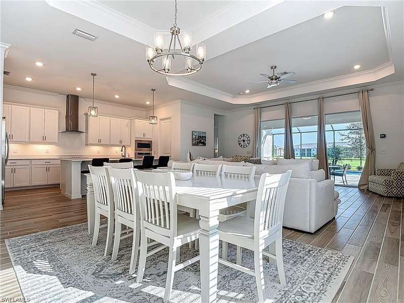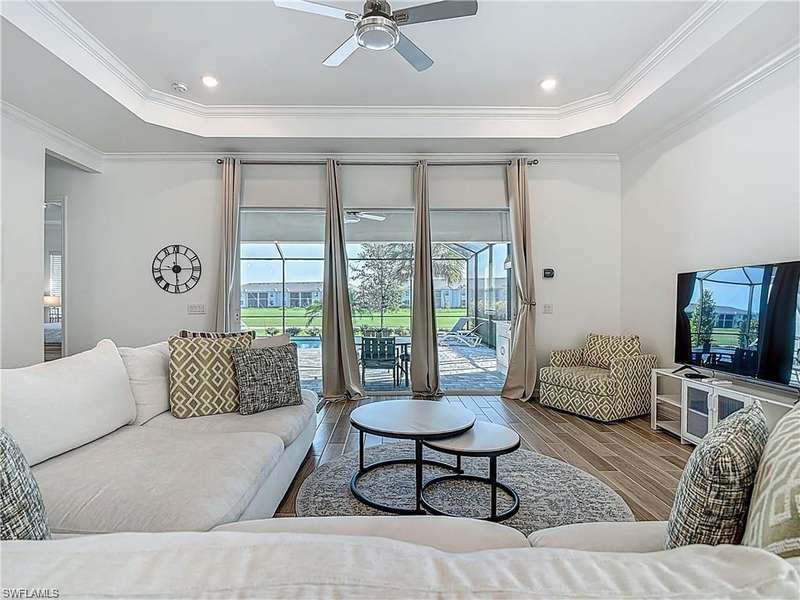 Exceptional opportunity to rent this beautiful Maria Model with BUNDLED GOLF in The National Golf and Country Club in Ave Maria. This spacious home features 4 bedrooms, 3 baths chef inspired kitchen with built-in wall microwave and oven. The kitchen featues a large island with quartz counters, stainless range hood, stainlessa appliances, 42' cabinets, lots of storage and a walk-in pantry. The home has a split-floor plan offering lots of privacy and includes a seperate bedroom with its own bathroom great for older kids or in-laws. The master suite includes his and hers closets, as well as seperate vanities and walk-in shower. Enjoy family time with the gorgeous golf course and Lakeview from your screened in lanai. The lanai offers a in-ground pool and spa and custom outdoor kitchen with grill thats vented outside and refrigerator. The National amenities include a 23,000 sqft clubhouse, two restaurants, state of the art fitness center, full-service Spa, resort pool and a lap pool. Plus, the Gordon Lewis designed golf course, 8 tennis and 6 pickleball courts and 2 pro shops. The Ave Maria community has a lot to offer including: parks, walking trails, restaurants, shopping, Publix grocery and so much more!