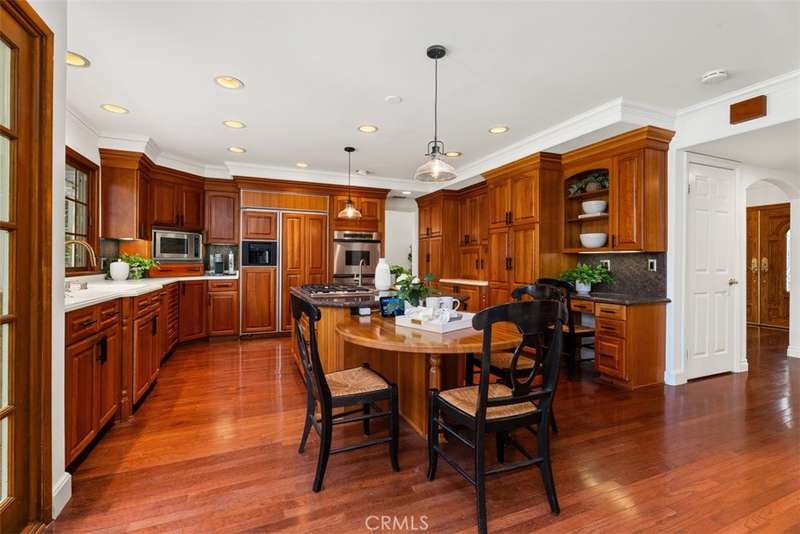 Welcome to this beautifully maintained home in the highly desirable La Paz community of Mission Viejo! From the moment you arrive, you'll be impressed by the paver driveway and charming front courtyard that lead to a dramatic double-door entry. Inside, the spacious foyer, soaring ceilings, and elegant staircase set the tone for this light-filled and thoughtfully designed home. To the right, the formal living room features vaulted ceilings and a cozy fireplace, seamlessly flowing into the dining area with French doors that open to your private entertainer's backyard. The heart of the home is the chef's kitchen--an absolute dream with Omega custom cabinetry, a large island with prep sink, built-in gas cooktop, warming drawer, double ovens, built-in refrigerator, microwave, and dishwasher. A wall of cabinetry, small desk area, and attached breakfast nook/table provide abundant functionality. The kitchen overlooks the serene backyard and opens to the inviting family room with fireplace and additional French doors for indoor-outdoor living. Downstairs also includes a powder room and an incredible bonus storage room with more cabinet space and a large wine refrigerator--perfect for your bulk Costco storage. Upstairs, the expansive primary suite offers sweeping views of trees and mountains. The luxurious ensuite bath features a soaking tub, walk-in shower, private water closet, dual sink vanity, and a massive walk-in closet. Also upstairs, you'll find a beautifully designed laundry room with sink and ample cabinetry, making laundry tasks both convenient and organized. Three additional upstairs bedrooms include a Jack & Jill bedroom setup with a shared bathroom featuring a tub/shower combo and dual sink vanity, and a fourth bedroom with its own private ensuite bath with walk-in shower. Step outside to a peaceful backyard retreat with lush lawn, spacious patio with multiple seating areas, and beautiful views--ideal for entertaining or unwinding. Just a short walk to award-winning elementary, middle, and high schools, Montanoso Rec Center, Oso Creek Trail, Mission Viejo Library, Saddleback Lanes, Mission Viejo Farmer's Market, Trader Joe's, Yoga, Pilates, endless shopping, dining, and more! Enjoy the OPTION to join Lake Mission Viejo with boating, swimming, fishing, concerts & events. This impeccably maintained home offers the perfect blend of comfort, convenience, and California lifestyle. Welcome Home!