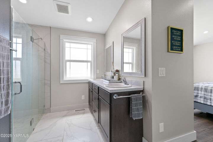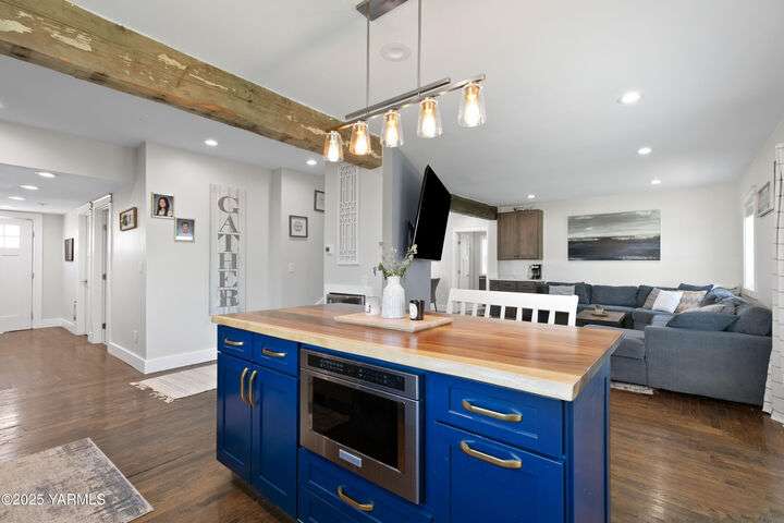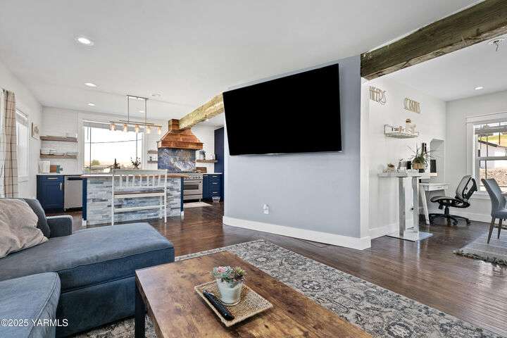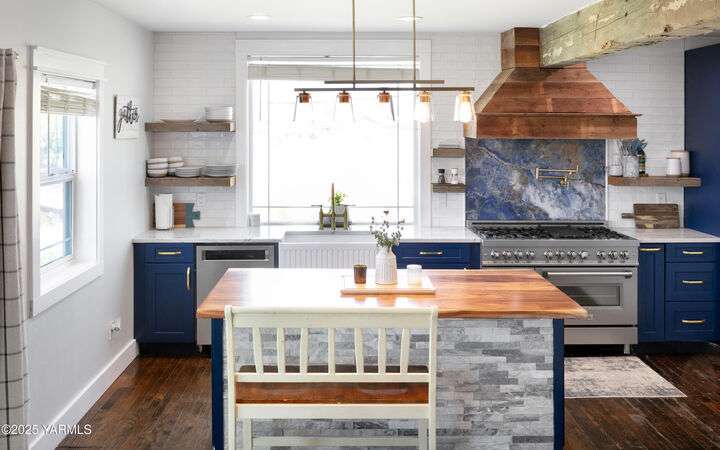 Welcome to country living at its best! This stunning, approximately 2,400 sq ft completely renovated farmhouse offers breathtaking 360-degree views and is perfect for those seeking tranquility and space. With 3 spacious bedrooms and 2.5 baths, this home also features a versatile bonus room that can easily be converted into a fourth bedroom with the addition of a closet.Step into the stunning open-concept kitchen, designed for culinary enthusiasts, featuring a gas range and electric oven, complemented by exquisite quartz countertops and a striking live-edge island that adds a touch of natural elegance. You'll love the charm of the original wood flooring that has been beautifully restored on the main level, preserving the farmhouse feel, complemented by thoughtful wood accents sourced from the original barn.The large master bedroom addition on the main floor is a true retreat, featuring a huge walk-in tiled shower with a rain head and a double vanity for a truly luxurious feel. The expansive yard is perfect for kids and pets to play, with irrigation water supplied from the Selah Naches district. Huge 30x24 shop that once served as a cold room is heavily insulated along with the 24x24 original barn gives you even more room to spread out while adding to the character.Recent updates within the last 5 years include all new electrical, HVAC, plumbing, siding, windows, and roof, ensuring modern comfort while retaining the character of this beloved home. This property is a true gem, infused with love and care, just waiting for its next owner to create lasting memories. Don't miss the opportunity to experience this unique blend of modern amenities and historical charm!