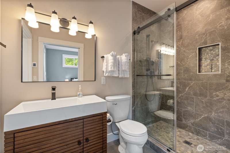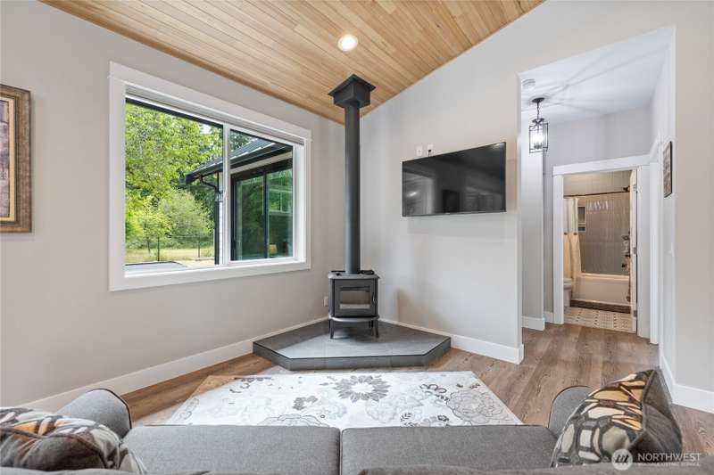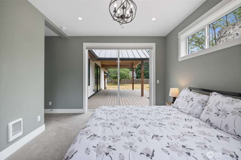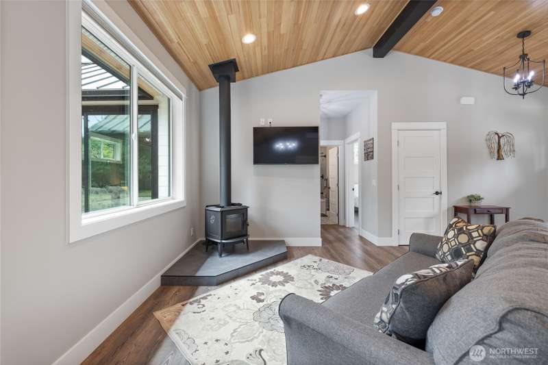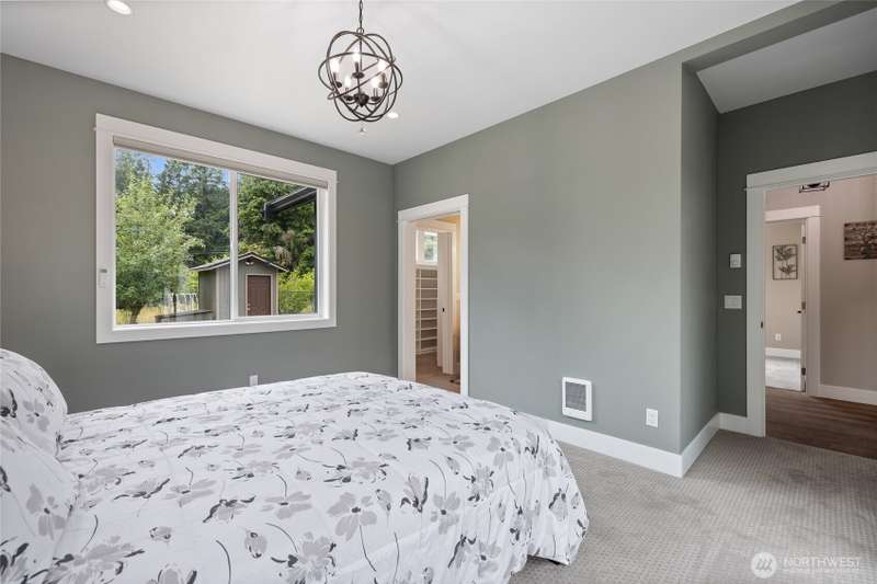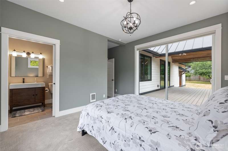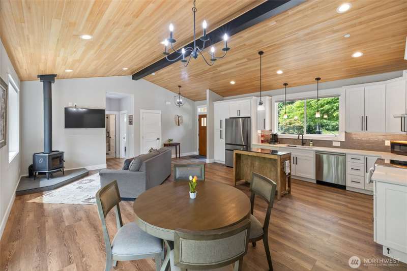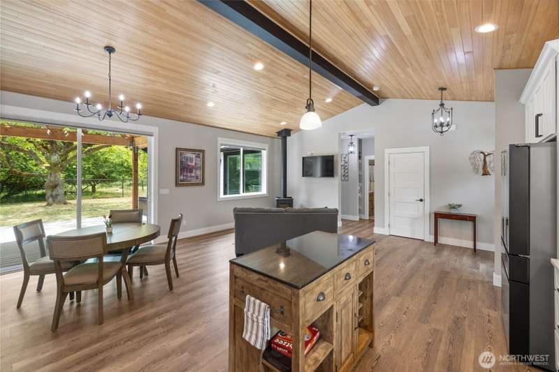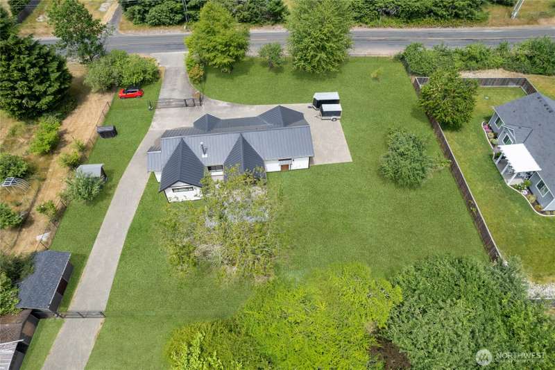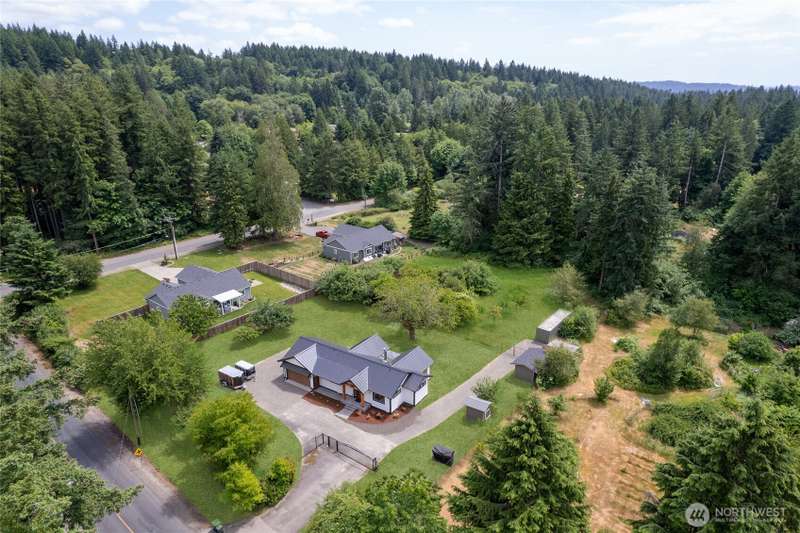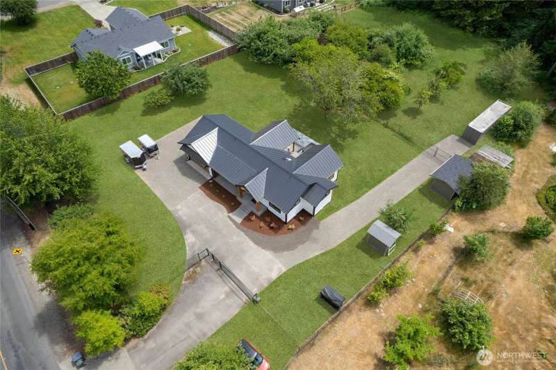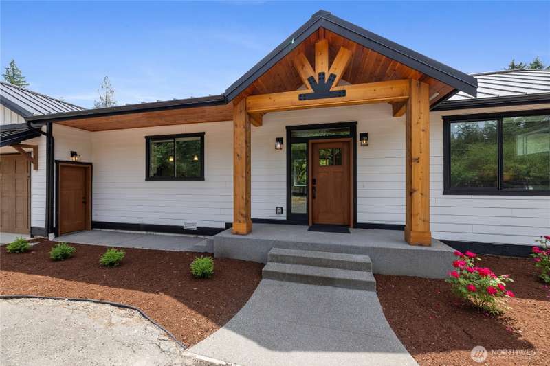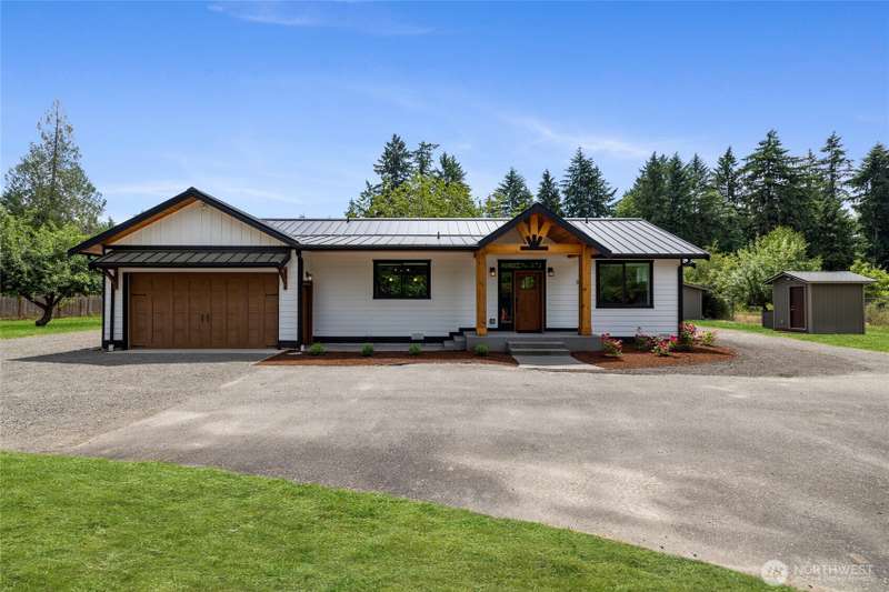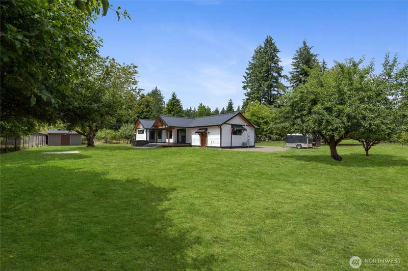 Discover elevated living in this luxury eco-home on 1.17 acres, crafted with premium SIPS construction and sustainable, high-end materials. Impeccably designed, it features radiant heated tile floors, custom designer finishes, motorized blinds, a gourmet kitchen with movable granite island, and a walk-in closet by Closets by Design. The grounds offer full RV hookups, hot tub-ready setup, remote entry gate, and a lush orchard of apples, pears, cherries, plums, and grapes, where the wildlife roams. $4K ADU site plan included—permit in progress. Generator-ready with a metal roof, tongue & groove ceilings, and just minutes to schools and serene local fishing. A rare blend of luxury, innovation, and timeless charm.