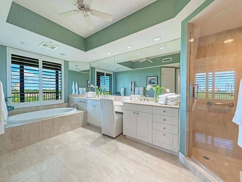 Step into refined coastal living in this exceptional three-bedroom plus study residence at the distinguished Montenero in Pelican Bay. A wall of glass opens to a sweeping 46-foot lanai, framing uninterrupted views of the Gulf of Mexico and Clam Pass estuary. Every detail has been meticulously curated, from the stunning chef's kitchen with premium Bosch appliances to the elegantly appointed living spaces. Three full bathrooms and a stylish powder room offer comfort and privacy, while two assigned parking spaces in the covered garage ensure convenience. Designed for both relaxation and entertaining, this home seamlessly blends modern luxury with timeless tranquility. Each en-suite bedroom offers private lanai access, creating an atmosphere of refined coastal living.