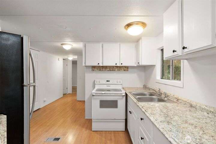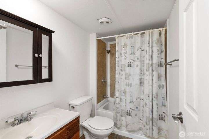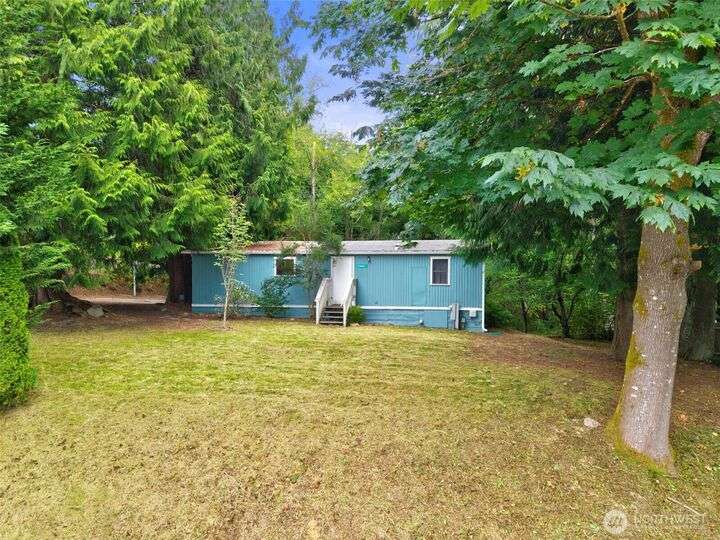 It’s not perfect, but you can make it pretty darn sweet! Affordable, move in ready home, with potential for sweat equity improvements. Sited on a spacious .34 acre lot surrounded by stately evergreens this double wide manufactured home offers 2 bedrooms, 2 full bathrooms. Entertain on the large backyard deck, with room outdoors for gardening and play, bordered by the natural privacy of mature trees. Two sheds provide excellent storage and workspace, ideal for hobbies, tools, or outdoor gear. Ample space on the level lot for boat/RV parking. Enjoy Gamblewood’s community beach, playground, and sports courts, with nearby access to popular Heritage park trails. Convenient location is close to ferries, schools, shopping, and restaurants.