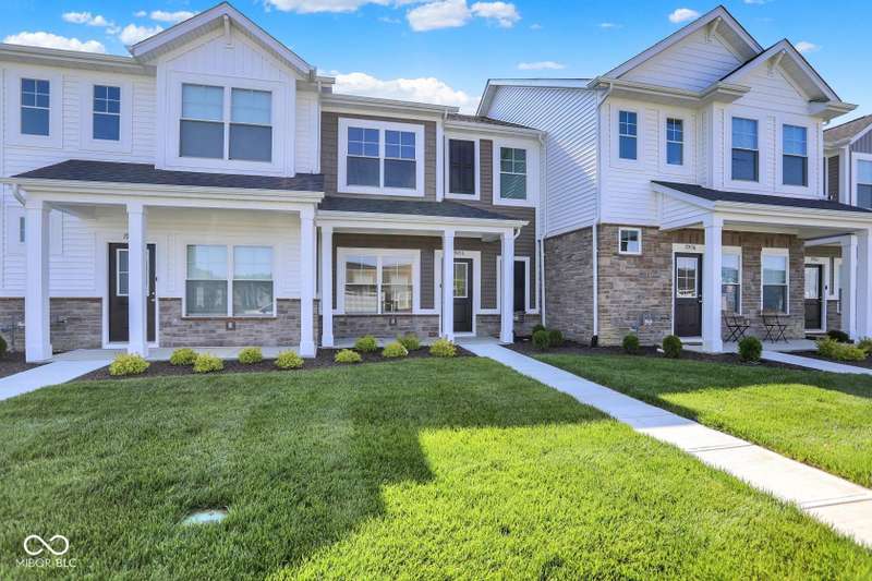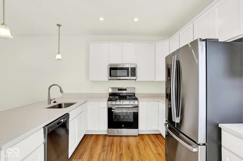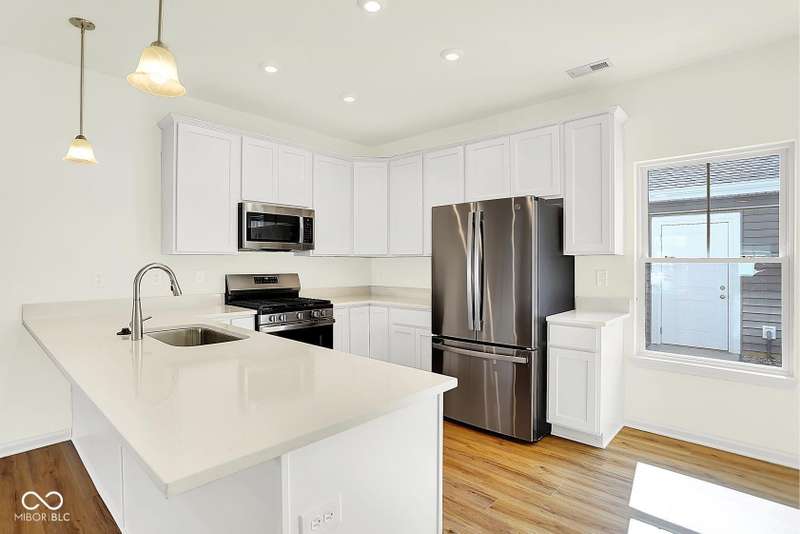 Come explore the Henning Townhome - offering 1,197 square feet of stylish, low-maintenance living with 2 bedrooms, 1.5 baths, a 2-car garage, and a private courtyard perfect for outdoor relaxation. This home features a dream kitchen with 42-inch white cabinets, quartz countertops, and stainless steel appliances-ideal for those who love to cook and entertain. Enjoy luxury vinyl plank flooring throughout the main level, with plush carpet on the second floor and in both bedrooms. Each bedroom includes a spacious walk-in closet, adding convenience and comfort to this thoughtfully designed home.