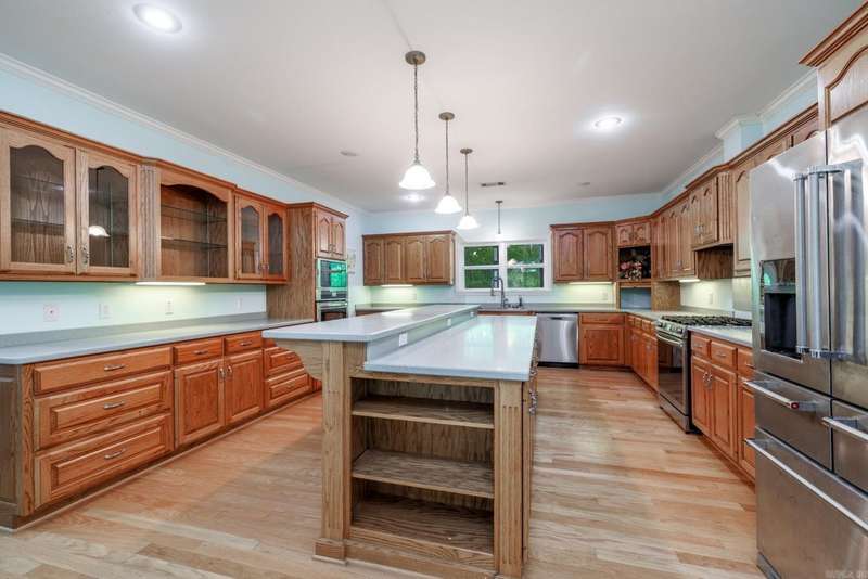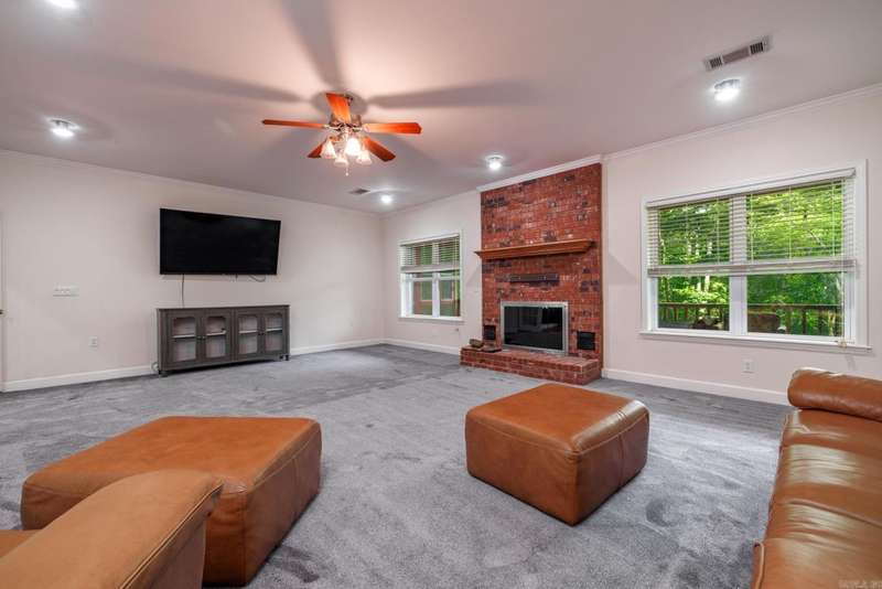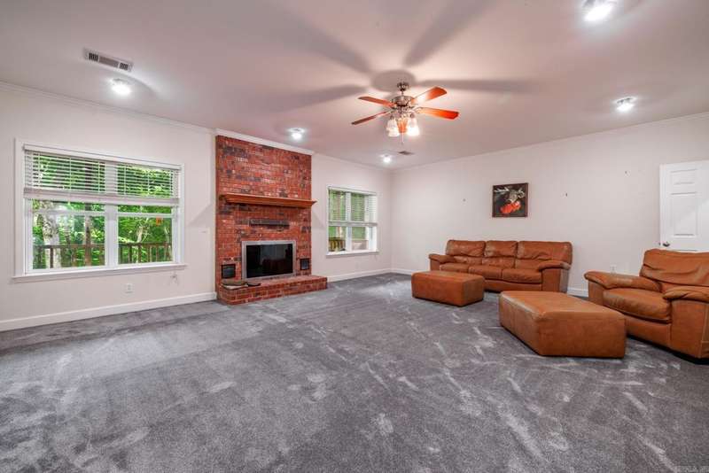 Welcome to your dream home situated just outside of Arkadelphia, nestled on over 2 acres of picturesque land. This stunning residence boasts 3 spacious bedrooms and 2 full baths, complemented by 2 additional half baths for convenience. As you step inside, you will be greeted by a beautiful open-concept living and kitchen area, perfect for entertaining or family gatherings. The kitchen features brand new appliances, ensuring a modern and functional space for your culinary adventures.The spacious den invites you to relax, complete with a cozy fireplace that adds warmth and charm. You'll love the new carpet that enhances the comfort of the living spaces throughout the home. Retreat to the luxurious master suite, which offers a huge walk-in shower and a soothing soaking tub, creating your own personal spa experience. The oversized garage provides ample storage and parking space, while the heated and cooled basement, equipped with a half bath, offers additional versatility for recreation or guest accommodations. Step outside to your beautiful sunroom, where you can unwind while overlooking the serene woods and creek???an idyllic spot for morning coffee or evening relaxation.