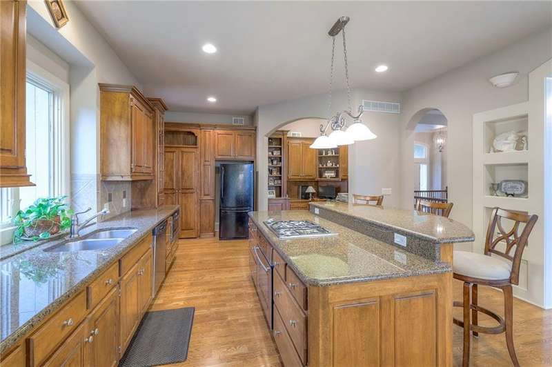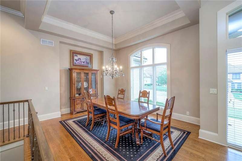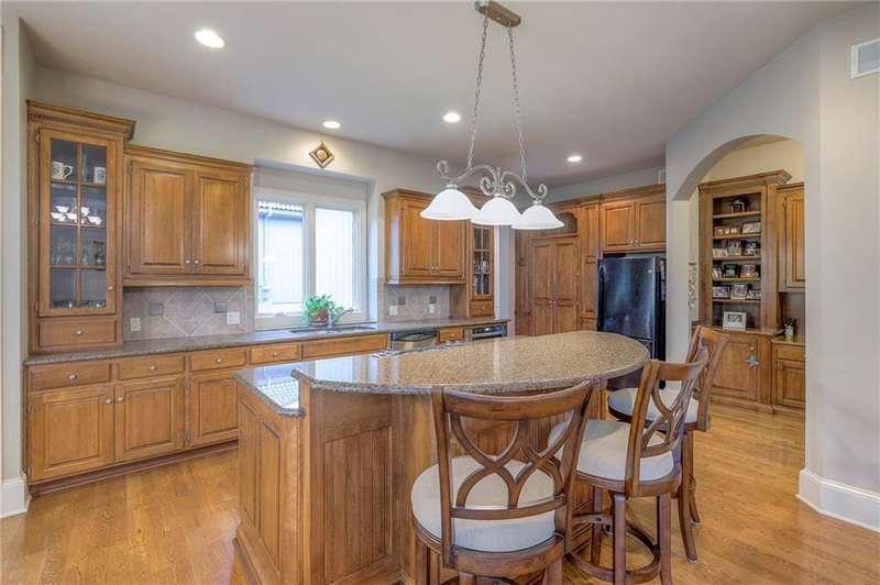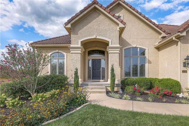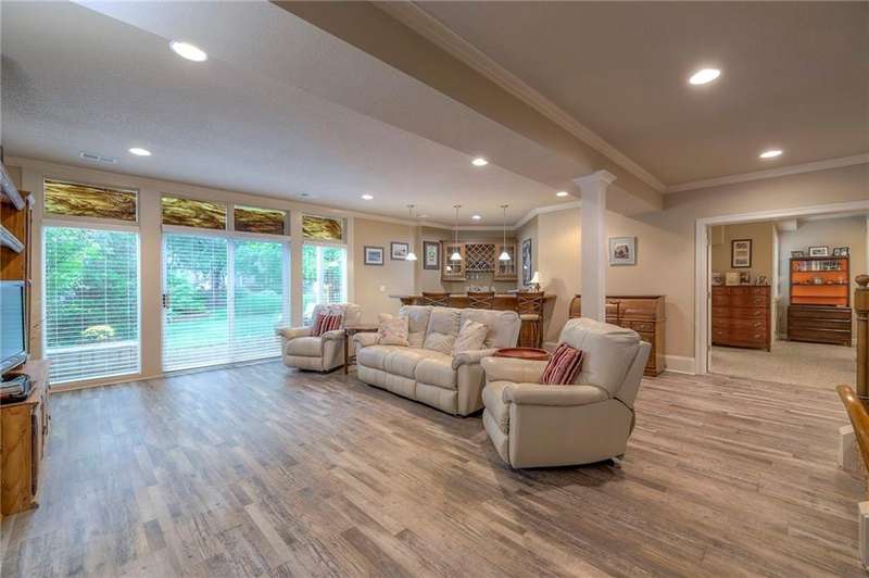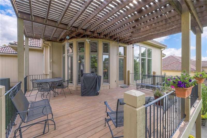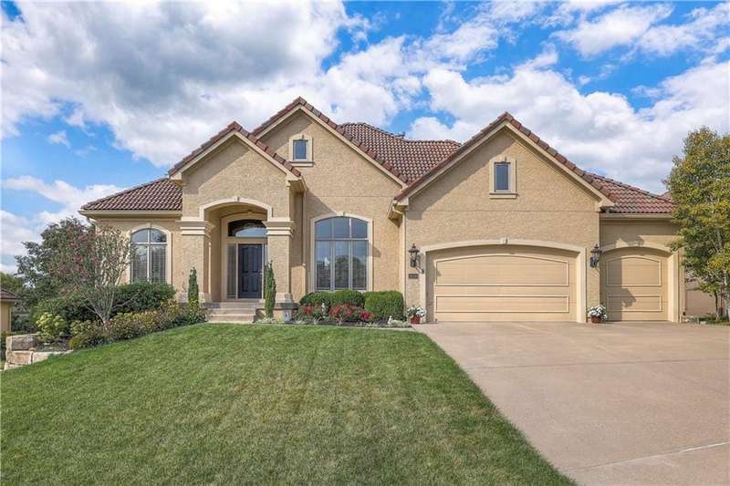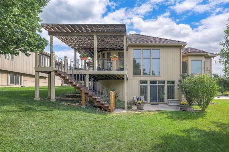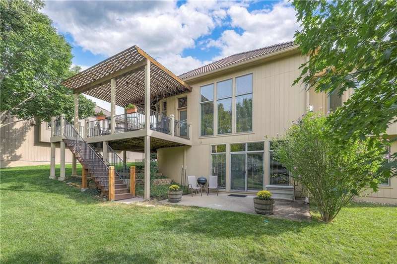 Discover your dream home in Deerbrook! Lush landscaping welcomes you to this gorgeous, well-maintained Don Julian Reverse 1.5-story. This beautiful walk-out home offers 4 bedrooms, 3.1 bathrooms, and a 3-car garage. Step inside and experience quality craftsmanship throughout soaring ceilings, abundant natural light, and gleaming hardwood floors create an inviting, open atmosphere. The thoughtfully designed floor plan flows effortlessly, making everyday living and entertaining a joy. Enjoy a formal dining room, a lovely living room with floor-to-ceiling windows and a fireplace, and an eat-in kitchen featuring rich cabinetry, a center island, gas cooktop, and built-in desk/office space. Large primary suite with hardwood floors, double vanity, walk-in shower, jacuzzi tub, and walk-in closet with washer/dryer hook-up for added convenience. The walk-out lower level is ideal for guests or family, offering a large family room with a built-in bar, three generously sized bedrooms, two full baths, and a second laundry room. Relax and unwind outdoors on the deck with pergola or the lower-level patio both overlooking the peaceful backyard. Enjoy community amenities including a neighborhood pool and scenic walking trails. Located in the award-winning Blue Valley School District and just minutes from top-rated schools, shopping, dining, entertainment, and highways this home truly has it all!