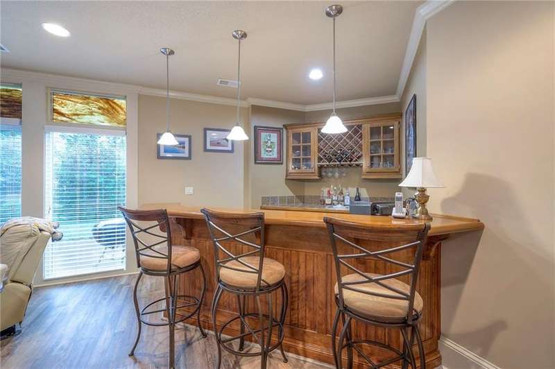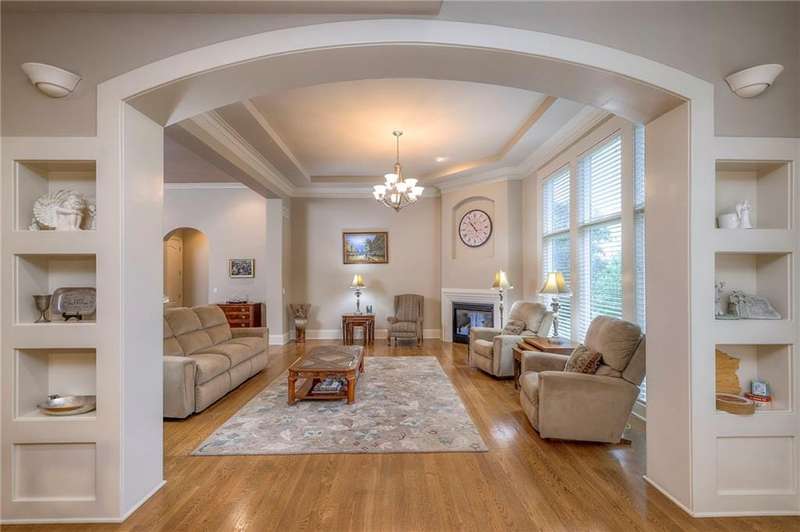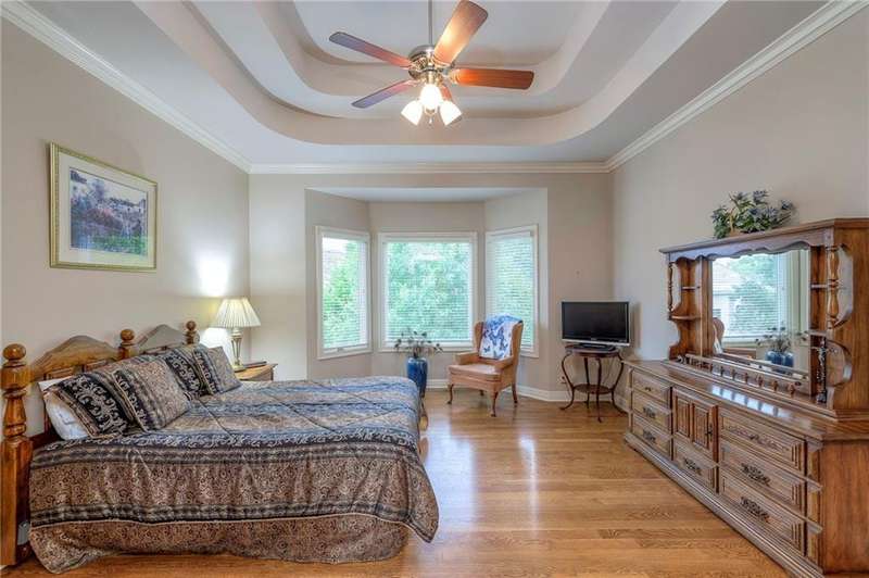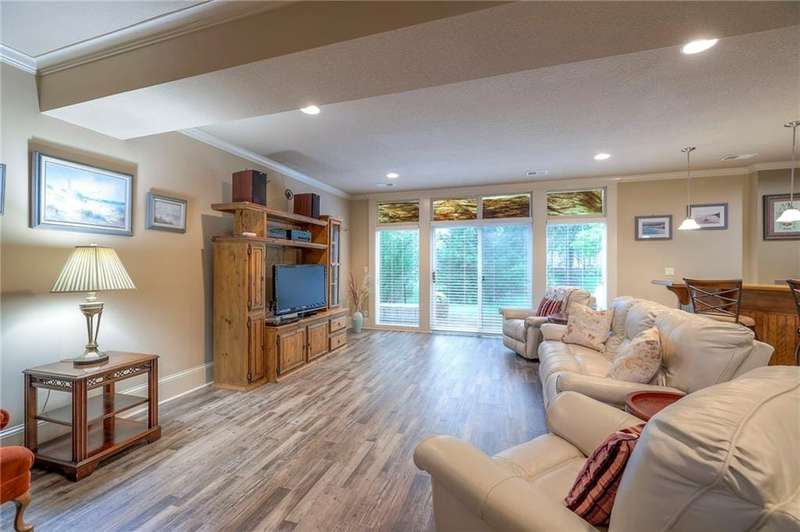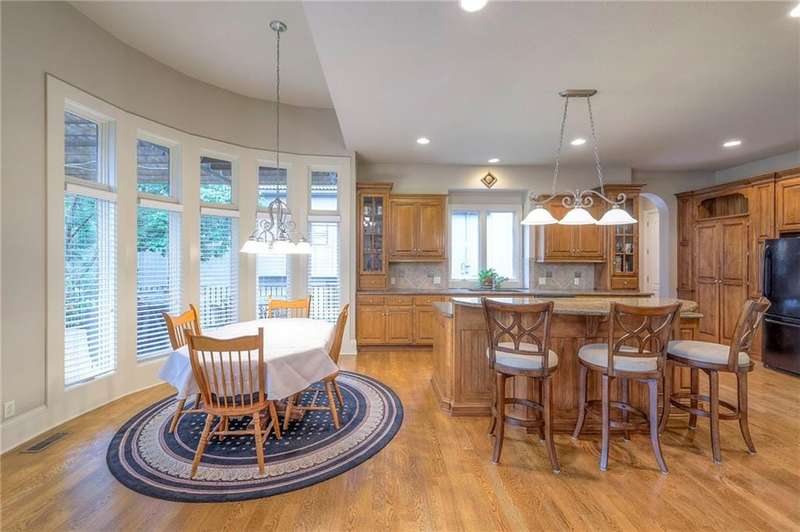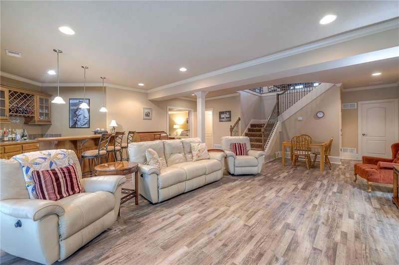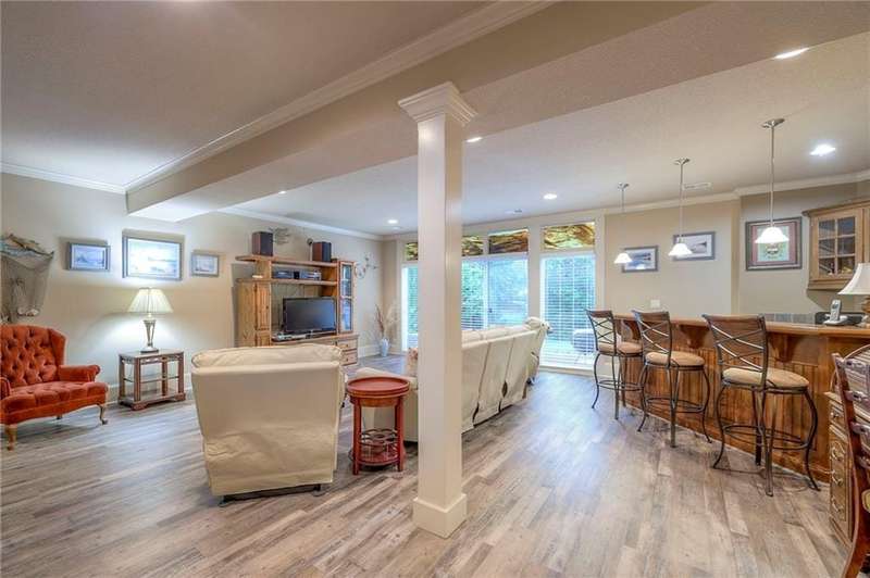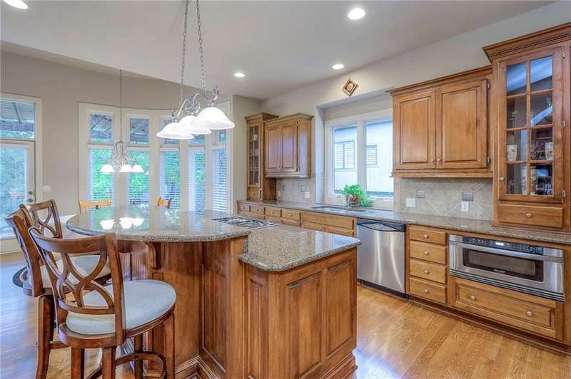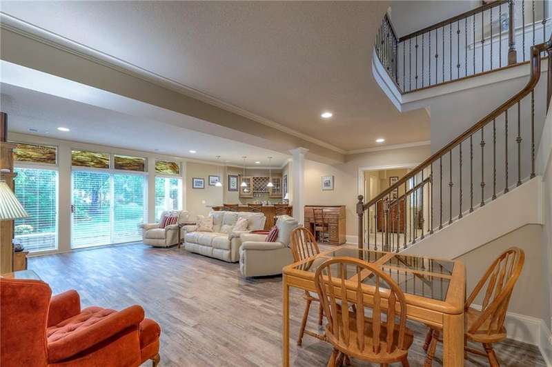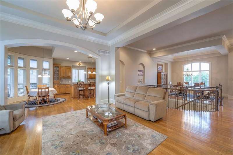 Discover your dream home in Deerbrook! Lush landscaping welcomes you to this gorgeous, well-maintained Don Julian Reverse 1.5-story. This beautiful walk-out home offers 4 bedrooms, 3.1 bathrooms, and a 3-car garage. Step inside and experience quality craftsmanship throughout soaring ceilings, abundant natural light, and gleaming hardwood floors create an inviting, open atmosphere. The thoughtfully designed floor plan flows effortlessly, making everyday living and entertaining a joy. Enjoy a formal dining room, a lovely living room with floor-to-ceiling windows and a fireplace, and an eat-in kitchen featuring rich cabinetry, a center island, gas cooktop, and built-in desk/office space. Large primary suite with hardwood floors, double vanity, walk-in shower, jacuzzi tub, and walk-in closet with washer/dryer hook-up for added convenience. The walk-out lower level is ideal for guests or family, offering a large family room with a built-in bar, three generously sized bedrooms, two full baths, and a second laundry room. Relax and unwind outdoors on the deck with pergola or the lower-level patio both overlooking the peaceful backyard. Enjoy community amenities including a neighborhood pool and scenic walking trails. Located in the award-winning Blue Valley School District and just minutes from top-rated schools, shopping, dining, entertainment, and highways this home truly has it all!