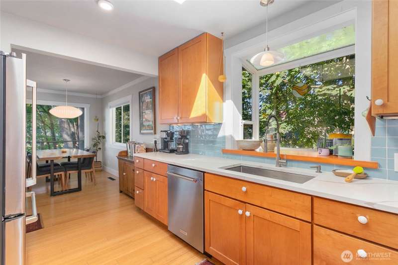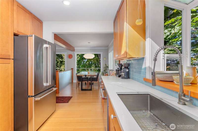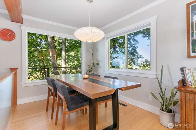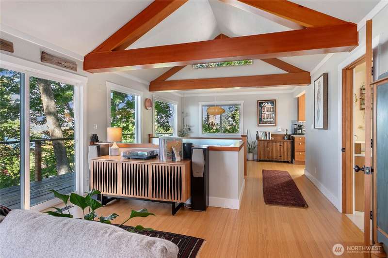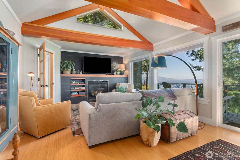 “Treehouse” South Hill retreat with endless views of the San Juans & Bellingham Bay! Vaulted fir-beamed ceilings, skylights, chef’s kitchen & primary on the main. Lower level offers flexible living, plus an additional lower-level suite with separate entry ideal for office, gym, guest suite, or 4th bedroom. Recent updates include furnace, water heater, updated plumbing & fresh finishes. Multiple decks & porches invite true indoor/outdoor living-start the day with sunshine, gather for summer meals, and unwind with spectacular sunsets and sailboat races. Fully fenced, dog-friendly yards, abundant storage, & two secure bike storage areas. Walkable to Fairhaven, Downtown, trails & waterfront, all in a highly sought-after South Hill neighborhood.