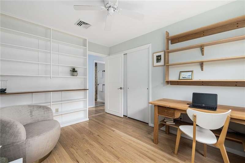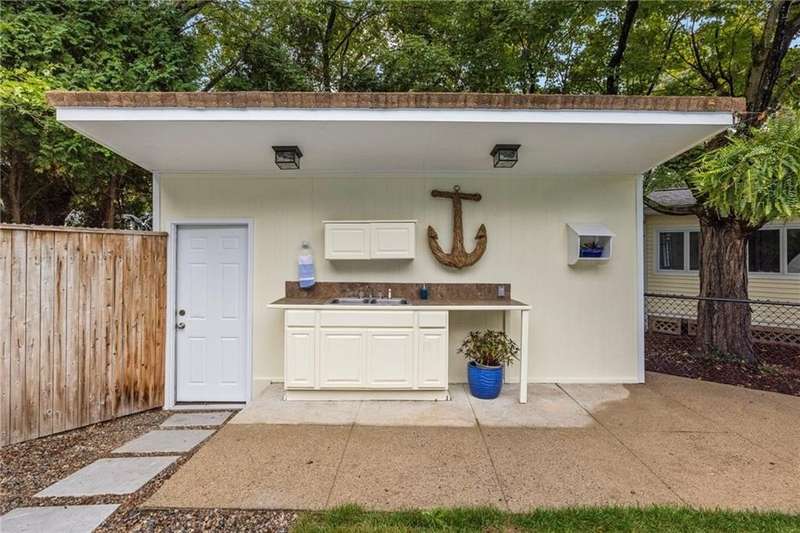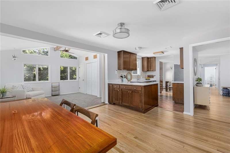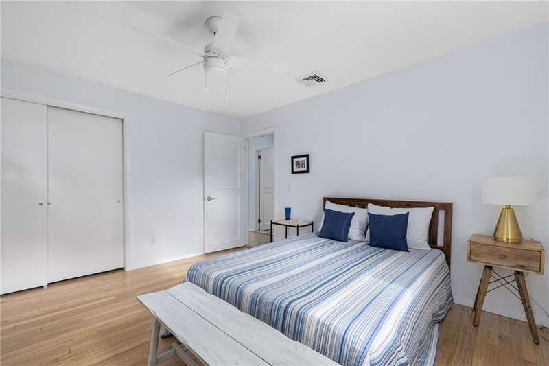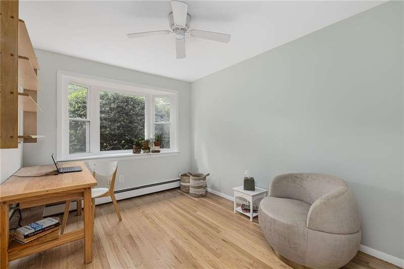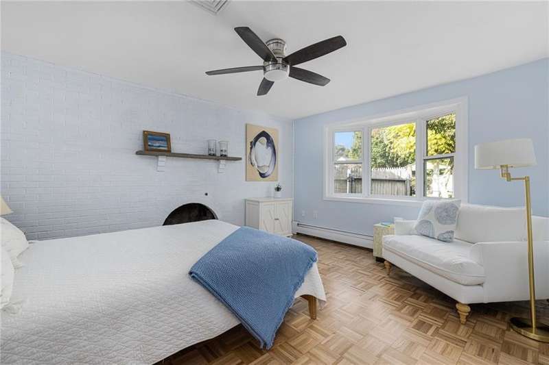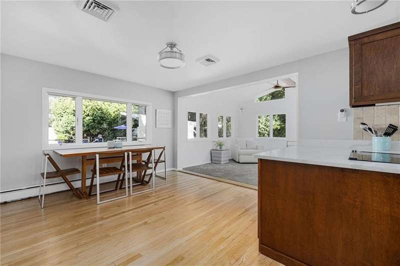 One level living on over half an acre a short distance to Wickford Village! This spacious ranch has been meticulously updated on both levels. Beautifully restored in-ground pool area with landscaping, hardscaping and many intimate gathering spots for entertaining and relaxing. A pool house features a half bath with storage, outdoor shower, and workshop. A pergola provides shade under a well established trumpet vine for al fresco dining, which is absolutely magical. Inside, the freshly painted interiors, living room with fireplace, updated kitchen, family room with vaulted ceilings, three bedrooms, 2 full baths, second fireplace, two dining areas, along with a home office complete this main level which is surprisingly large and convenient for one level living! The original oak flooring has been refinished and gleams. The partially finished lower level features a generous recreation room and half bath, along with a workshop, oversized cedar lined closet and additional storage. The mature specimen plantings and perennial gardens bloom all season and are easy to care for! Close to shopping, dining, commuter train to Providence and Amtrak, highway access. Move in ready!
