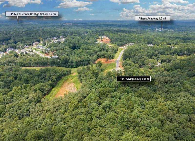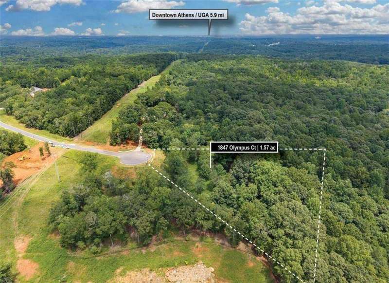 1847 Olympus Court Spartan Manor Estates Athens, GA (Oconee County) Vacant Cul-de-Sac Lot Build Your Own Custom Home Bring Your Own Builder 1847 Olympus Court presents a rare opportunity to build a custom home in one of Oconee County's most exclusive communities. Located on a quiet cul-de-sac in Spartan Manor Estates, this private, wooded lot offers the ideal setting for a personalized residence designed to fit your lifestyle. Spartan Manor is a thoughtfully planned neighborhood of just 26 estate-sized parcels, ranging from 1.5 to 4.57 acres. Each home is individually designed and built, with architectural review ensuring a cohesive and elevated aesthetic. Properties in the community range from $1.6M to $3M, reflecting the quality and creativity that define the area. The Setting Surrounded by mature hardwoods and gently sloping terrain, 1847 Olympus Court offers privacy, natural beauty, and design flexibility. Whether your vision leans modern, traditional, or somewhere in between, this lot provides the space and freedom to bring it to life. The Requirements Spartan Manor is designed for larger, custom-built homes that complement the scale and beauty of the landscape. Minimum build requirements are 3,200 square feet for a one-story home and 3,800 square feet for a two-story - ensuring every residence reflects the quality and presence expected in this premier community. The Location Perfectly situated near downtown Athens, Spartan Manor blends the ease of city living with the calm of a secluded cul-de-sac. Just minutes from boutique shopping, acclaimed dining, top schools, and cultural landmarks, this private enclave offers a lifestyle that's both effortlessly connected and quietly refined. Athens address with Oconee County taxes and schools Under 10 minutes to Five Points and less than 15 to Sanford Stadium Zoned for top-ranked Oconee County public schools Less than a mile to Athens Academy, a National Blue Ribbon School Build your future from the ground up. Schedule your visit to 1847 Olympus Court today - while there's still time to make final selections and create something truly your own.