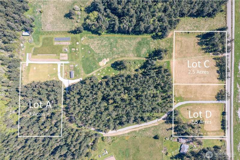 Beautiful, level sunny 3 acres ready for you to build your dream home! Situated in an ideal location close to Oak Harbor amenities & NAS Whidbey, as well as a short drive off the island via Deception Pass. Located in the Whidbey rain shadow, this secluded & attractive lot is partially cleared & partially forested w/ commercial grade timber. Enjoy the beautiful winding driveway leading to this lot. An active power meter on the lot & an approved well site (needs well). A 3 bedroom septic & manufactured home building permit in hand. Great soils for your gardening delight! The corners are surveyed. Manufactured homes allowed. No HOA. Come & see this dream site, ready to build. Lot D available for sale as well MLS #2415718