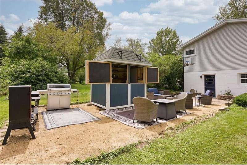 Welcome to your own private retreat nestled in the heart of Baldwin, WI. This distinctive multilevel home gracefully blends modern comfort with country charm, offering an exceptional experience on 2.38 picturesque acres. This home features thoughtful design maximizing space and natural light. Four bedrooms and two baths, three of the bedrooms and one full bath upstairs, plus a private fourth bedroom and ½ bath in the lower level. Open concept living, kitchen and dining room, perfect for gatherings and entertaining. Spacious basement great room, ideal for movie nights, relaxation or family fun. Delight in your own small vineyard and abundant apple, cherry and pear trees, what a great opportunity for homegrown harvests. Relax in a tiki bar setting within a sandy area, perfect for summer entertainment. The home features an expansive deck overlooking the backyard, offering sweeping views and a perfect spot for sunrise coffee or evening relaxation along with a beautiful rolling creek providing a peaceful backdrop and connection to nature. This is an easy walk to downtown Baldwin shops, restaurants and community events. Quick access to Hwy 94 for effortless commuting. You will simply love this home with rare in-town acreage, which is seldomly found in Baldwin, offering a blend of modern amenities and outdoor living. Als, ideal for those seeking privacy and space with the convenience of town living. This home is move-in ready and perfect for making lasting memories. Don’t miss your chance to own this truly unique Baldwin property—where comfort, charm and endless possibilities await. Schedule your tour today and discover the serenity and joy of life on 2.38 beautiful acres in town!