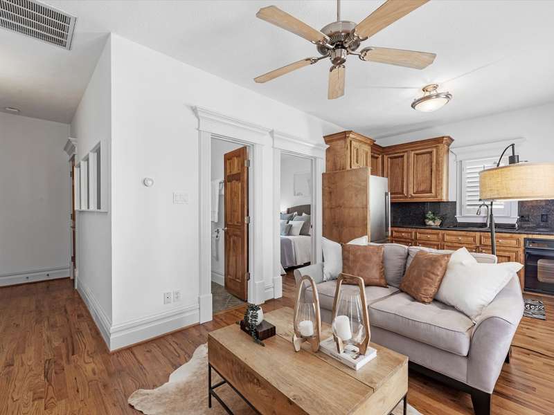 Architect-designed 4 Br home w/ rare private GARAGE APT. & coveted WALKABILITY to Memorial Park. The 3,915 sf home is complemented by a 550 sf 1Br / 1Bath garage apt. w/ full kitchen, private entrance, & off-street parking - versatility for rental income, m-i-l suite, or additional office. Main house greets with IMPORTED Italian Mosaic tile entry, custom millwork & HARDWOODS throughout. Marvin-brand windows provide superior sound & temperature control. Soaring-ceiling primary suite with granite fireplace & large his-and-hers closets. 3rd Fl.- OVERSIZED 4th bedroom brings flexibility for home gym or game room. Enjoy 1,000+ sf of fenced yard & patio, pet-ready with doggy door, kept comfortable by automatic mosquito misting system. Gated parking accommodates 3+ vehicles w/ add 3 off-street spaces in circular drive. Back yard is pre-wired and pre-plumbed for a pool. New ROOF (2022), New Marvin WINDOWS (2024), Mosquito MIST system (2022). Zoned to fantastic SCHOOLS in a great community.