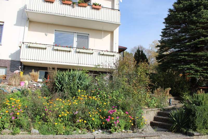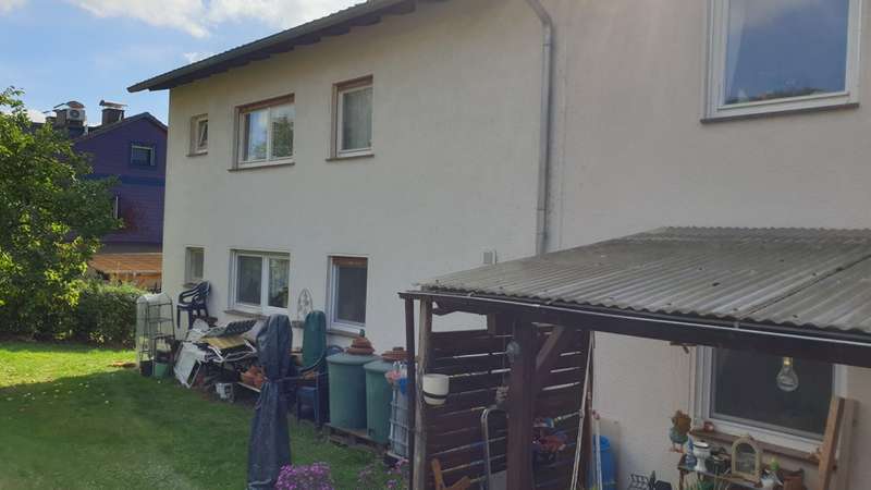 For sale is a detached two-family house with beautiful views in the municipality of Meinhard, Jestädt. The property from 1969 is located on a slope on a rectangular spacious plot. The large garden behind the house leaves nothing to be desired and is lovingly landscaped. Here hobby gardeners have the opportunity to realize themselves. Both levels of the two-family house have a living space of about 120 m² and are divided almost identically. The wide staircase connects both floors with each other. All rooms are easily accessible via the continuous hallway. On the right side are arranged kitchen with storage room, bathroom with bathtub and shower and a guest toilet. With passage to the balcony, a study is available at the entrance of the apartment. On the balcony facing south you can enjoy the distant view over the Werratal. A highlight of this level is the open living and dining room. Here is the possibility for the installation of a fireplace. From the living room, a patio door leads to a view-protected terrace directly behind the house. Use the quiet space for cozy hours with family and friends. In basement there are two garages, as well as storage rooms with the heating system. The garages are easily accessible from the street and offer enough space for your car. Overall, the property is in good condition, cosmetic repairs have been made continuously.