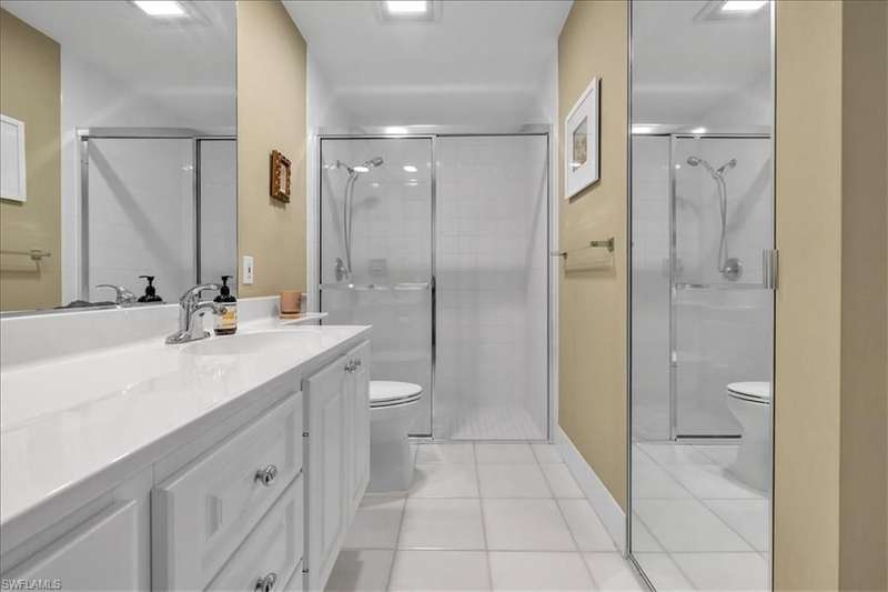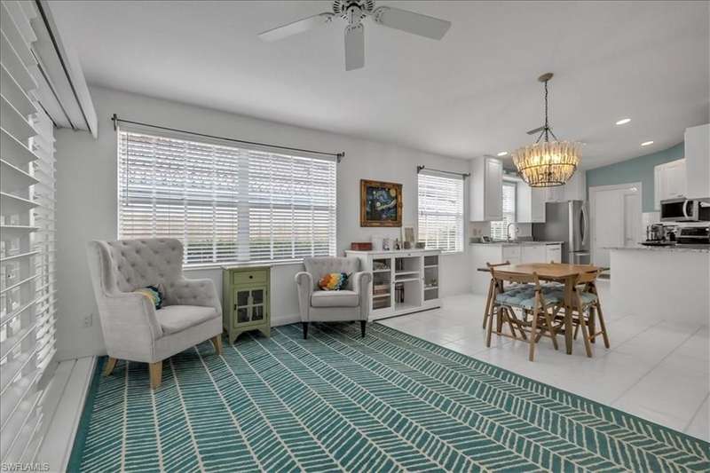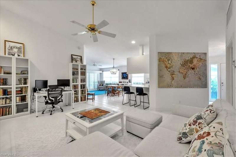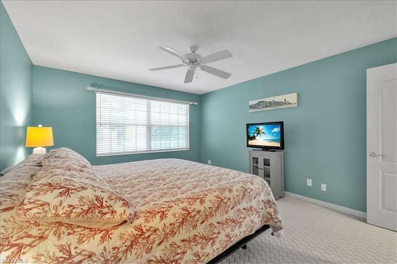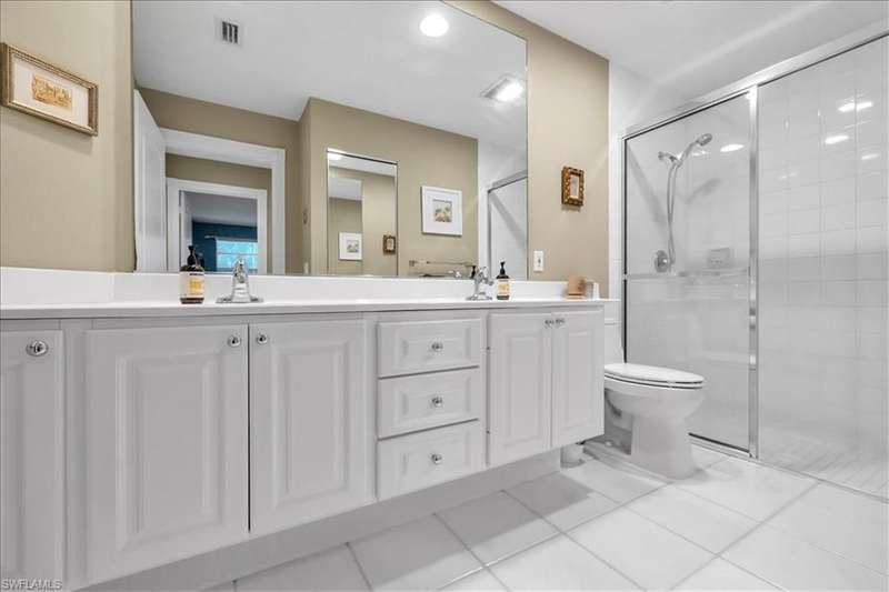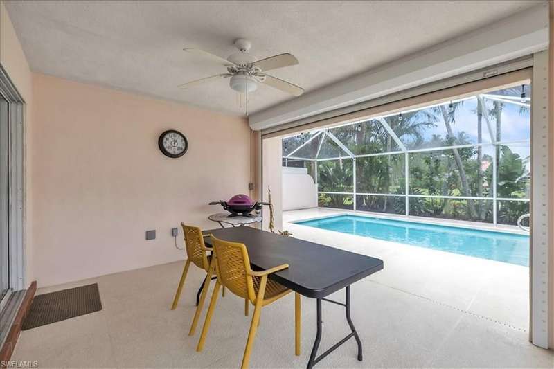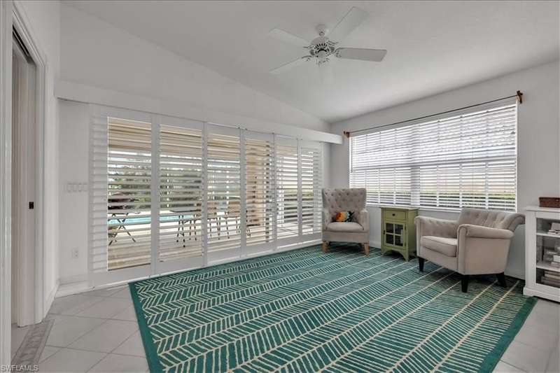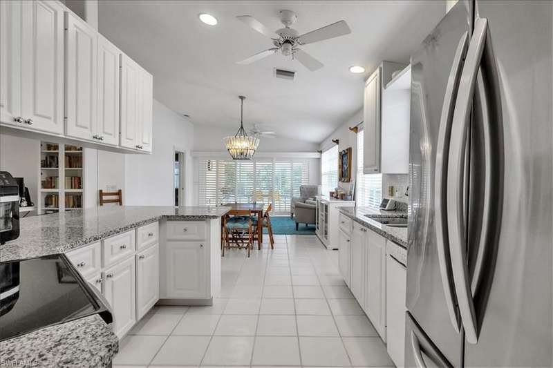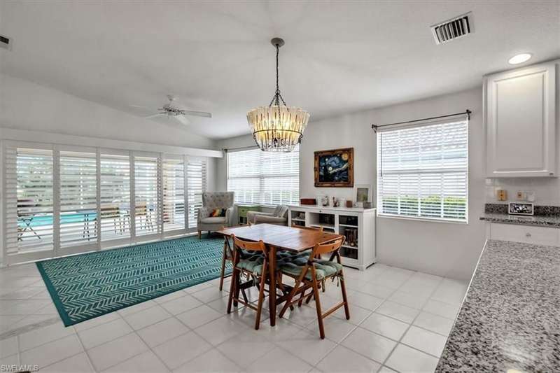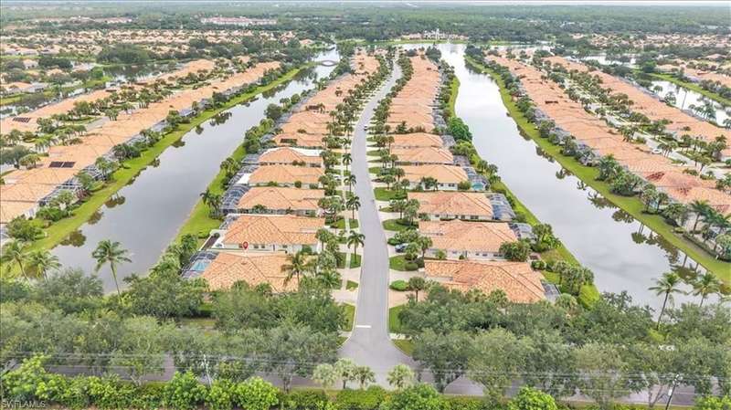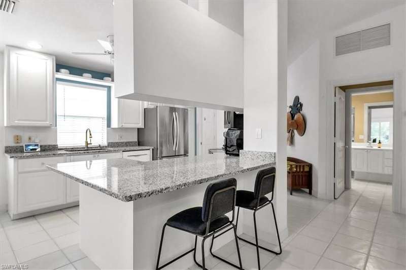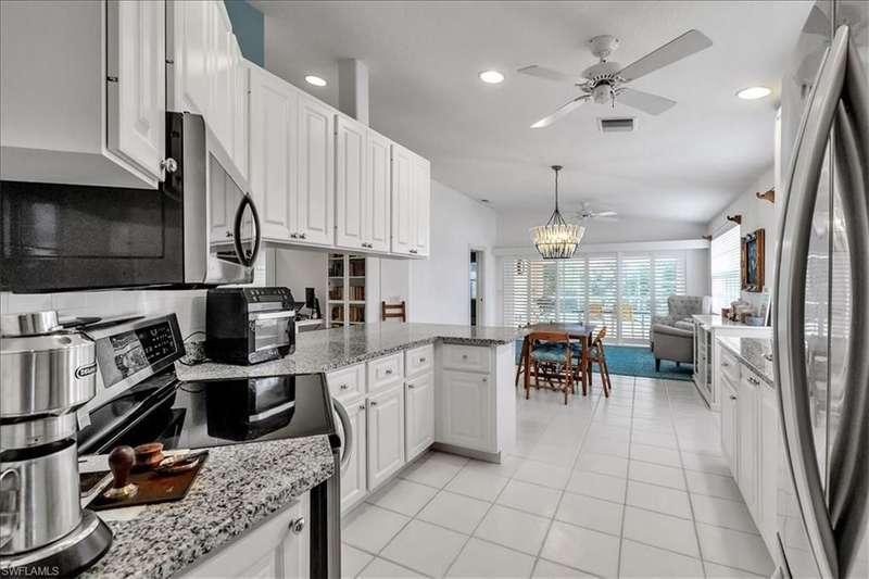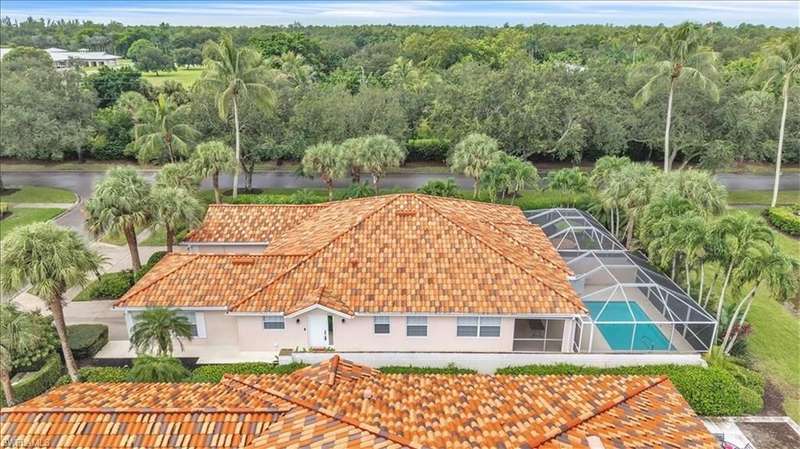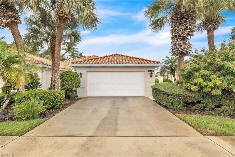Paradise found in this quiet, middle of the community location! The Perfect villa with a private pool, 2 car garage, so well maintained, and priced right! This Capri villa provides nightly sunsets from the sparkling private pool and covered lanai. Ideally located away from traffic noise. Featuring; 2 bedrooms - each with its own bath and walk-in closet, extra large great room concept with very open and flexible space, the clay tile roof was replaced in 2018, the a/c unit is from 2018, 2 car garage, pool was resurfaced, kitchen granite, plantation shutters on sliding glass doors, and this home is clean and neutral. Village Walk offers North Naples convenience and wonderful amenities like tennis, pickleball, on-site restaurant, gym with lap pool, 2 resort pools, miles of paved walking paths and Venician style bridges, and only 5 miles to the beach! Outstanding long-lasting value!!