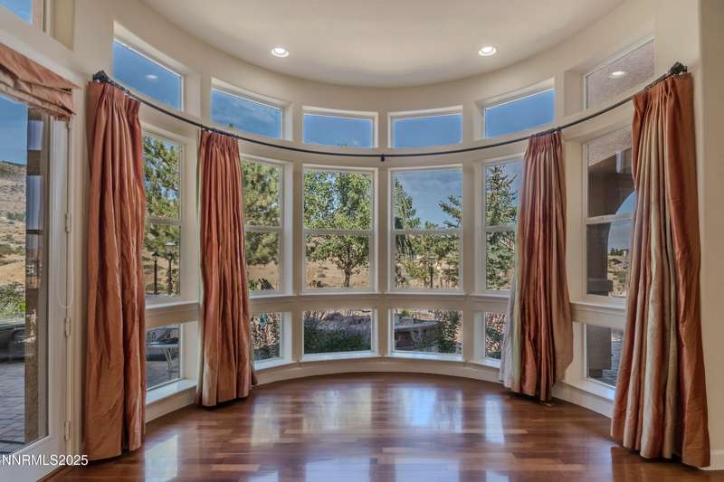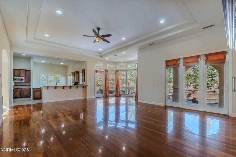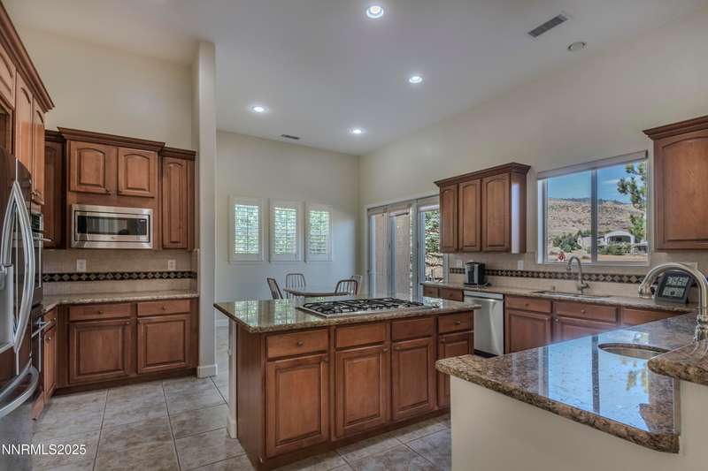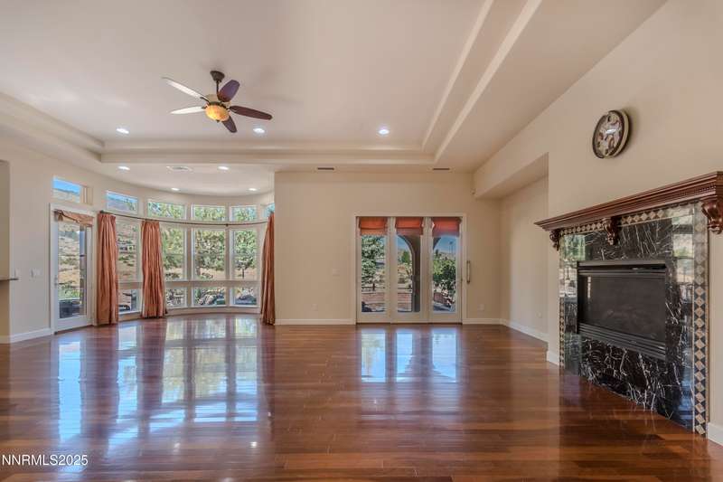 Welcome to this beautiful two-story home located in the highly sought-after ArrowCreek community of Reno, NV. Nestled in a quiet neighborhood with gated security, this residence offers the perfect blend of comfort and elegance. The home features a spacious open floor plan with abundant natural light, high ceilings, and thoughtful design throughout. The gourmet kitchen flows seamlessly into the living and dining areas, making it ideal for entertaining. Outside, you'll find a beautifully landscaped yard with lush greenery, mature trees, a fire pit, and a welcoming front entryway. The oversized driveway and three-car garage provide ample parking and storage.