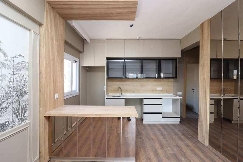 There are apartment options with 1 bedroom and studio apartments. The apartments have open-plan kitchen, bathroom, and balcony units. The apartments are equipped with a cloakroom, quality laminated parquet, wet floor coating, and air-conditioning infrastructure.