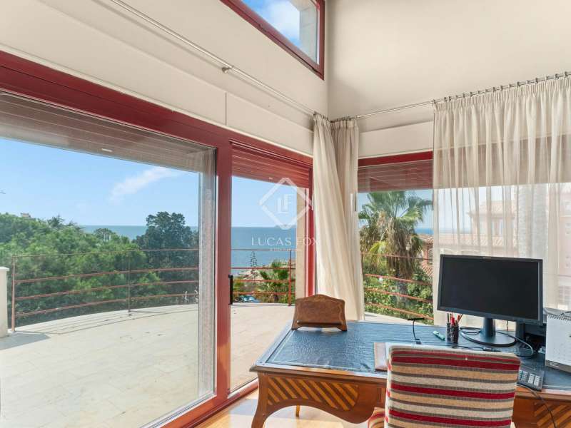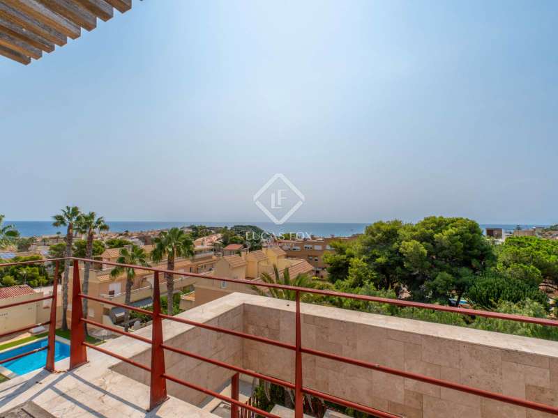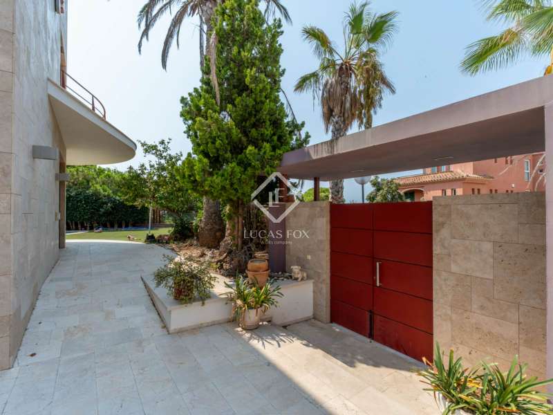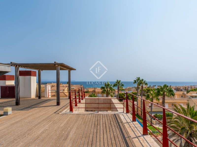 In the most privileged area of Cabo de las Huertas, lies this spectacular villa of over 1,000 m² built on a 1,200 m² plot . This exclusive property enjoys a unique beachfront location, offering stunning panoramic views of the Mediterranean Sea that stretch from Benidorm to Santa Pola. The property stands out for its luxurious travertine marble finishes, fine woods, and large windows with armored glass that fill each room with natural light. It is spread over three floors connected by a spacious triple-height entrance hall , a central staircase, and a six-seater elevator. On the main floor , there is a spacious, fully equipped 45 m² kitchen with a pantry and dining area for eight, a living room with a fireplace , and the 89 m² main bedroom with a double bathroom and two walk-in closets. The large, double-height 92 m² living room is very spacious and elegant. The upper floor houses three bedrooms, all with private bathroom, built-in wardrobes , and terraces with sea views. There is also a library, a utility room, and a guest toilet. The first- floor terrace connects to an upper terrace, which offers the most spectacular views of the property: from the Alicante mountains to Benidorm, Santa Barbara Castle, and the Santa Pola Lighthouse. The terrace is also designed to accommodate the Jacuzzi area. On the ground floor, there is a magnificent 66 m² wine cellar with ample capacity, a 128 m² recreation living room with a kitchen, dining room, billiard table, fireplace , and TV area, two guest restrooms, a utility room , and a separate staff apartment with a private entrance. The 110 m² garage has space for six vehicles and private access from the rear of the house. Exterior, the villa features several terraces at different levels, an English patio, a private pool with massage jets, a large porch, garden areas , and a 122 m² solarium with a spa and unparalleled views of the entire Costa Blanca. Its features include underfloor heating, individually controlled ducted air conditioning , motorized blinds, indoor and exterior alarms, auxiliary spaces such as a gym, showroom and storage rooms, as well as an indoor and exterior barbecue and wood-burning oven. The property is located in a peaceful setting, away from the hustle and bustle, yet just minutes from the beaches, marinas, amenities , and centre Alicante. A unique residence, designed to enjoy the Mediterranean with the highest quality of life. Contact us for more information about this luxury property with views, privacy, and security.