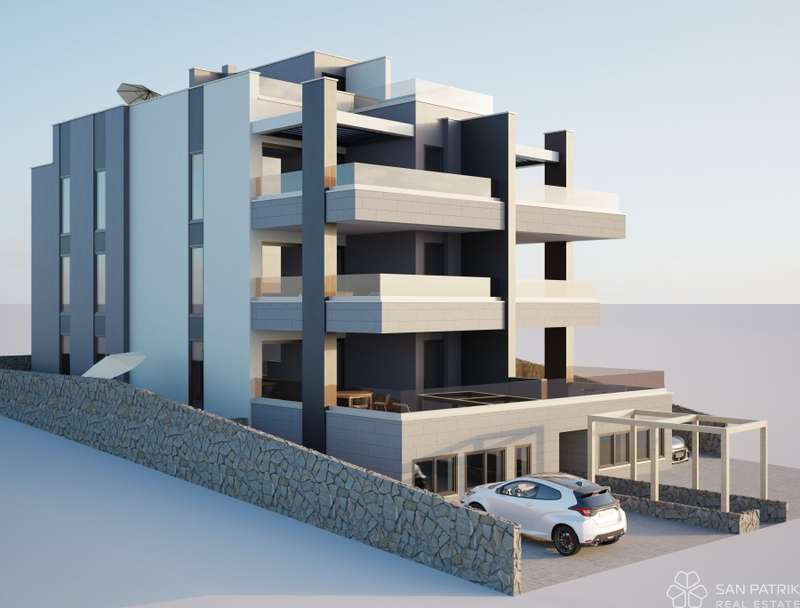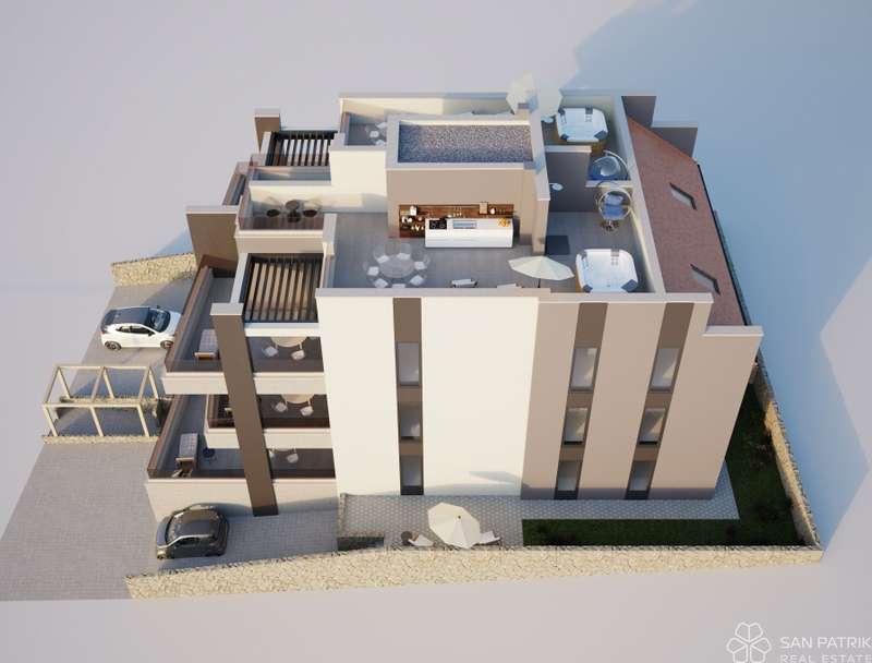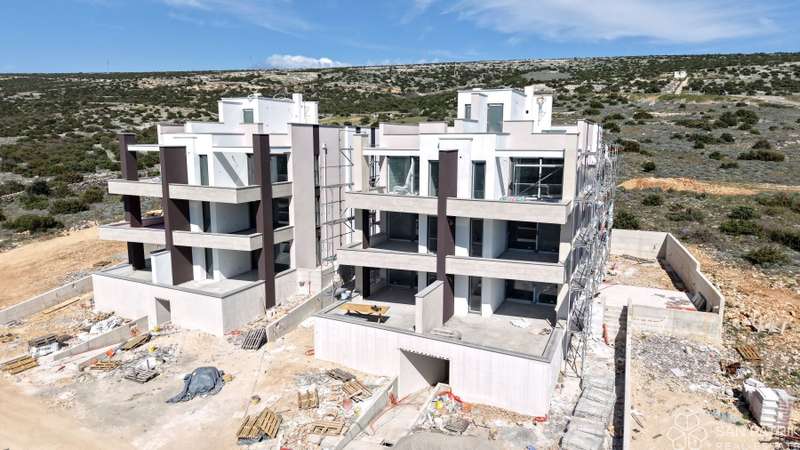 Nestled in the charming fishing village of Šimuni on Pag Island, this exclusive modern development consists of two elegant buildings with a total of 12 luxurious residential units. This intimate and rare location, surrounded by pine forests, creates a true oasis of peace and greenery on an otherwise rocky island.