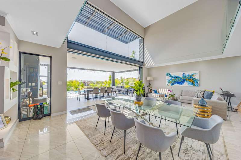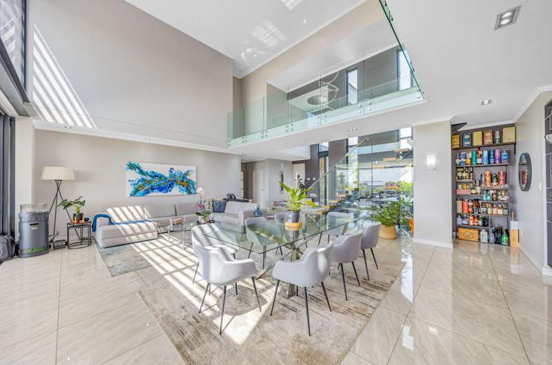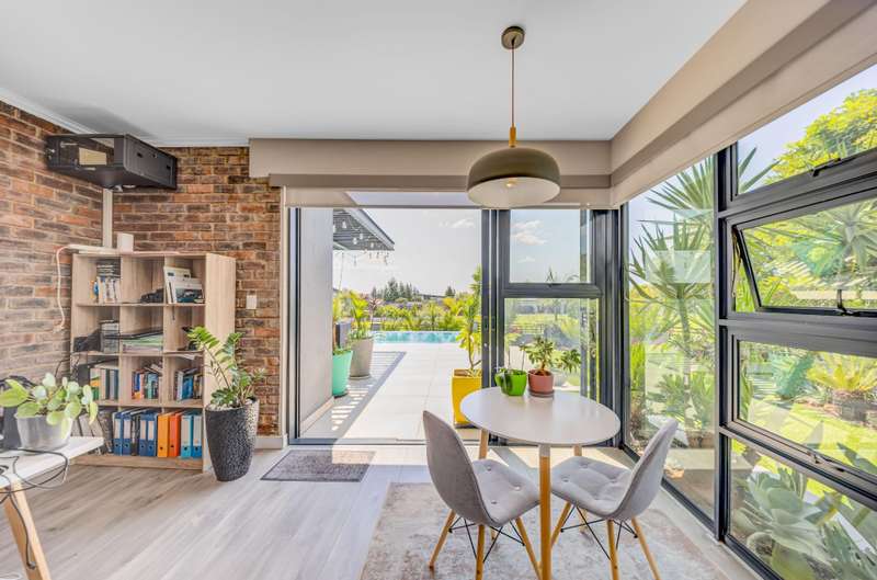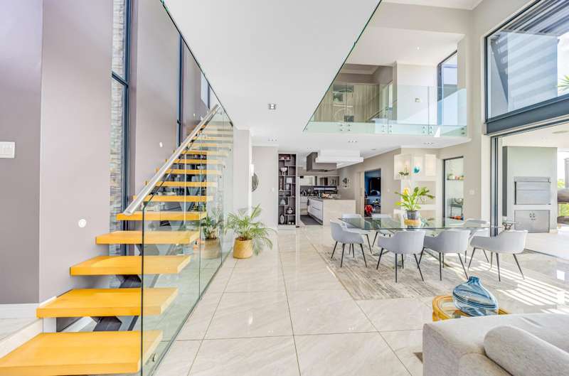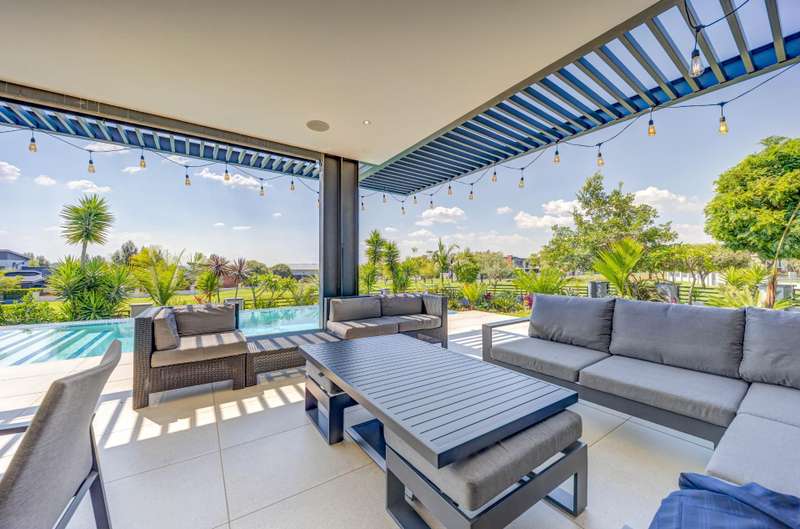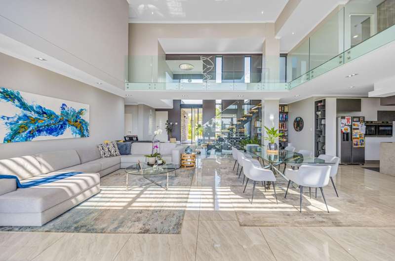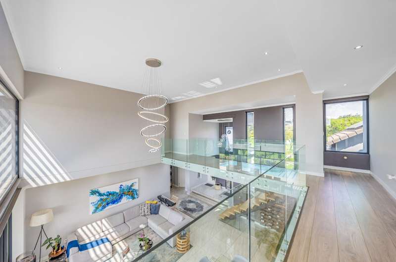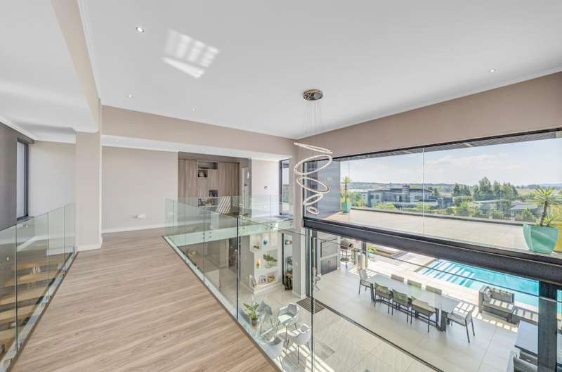 Discover an architectural masterpiece nestled within the prestigious Copperleaf Estate, home to the renowned Ernie Els designed 18-hole championship golf course. Surrounded by natural beauty and world-class lifestyle amenities, this ultra-modern residence offers sophistication, comfort, and seamless indoor?Çôoutdoor living ESTATE LIFESTYLE & AMENITIES Copperleaf Estate is one of Gauteng?ÇÖs premier residential golf estates, boasting: ?Çó Four scenic lakes with catch-and-release fishing ?Çó ??6 km of mountain-bike trails, also ideal for hiking ?Çó A fully equipped gym and luxury spa ?Çó A modern clubhouse overlooking the course ?Çó The estate?ÇÖs own signature eatery, The Deli This exceptional environment combines nature, wellness, and recreation within a secure, family-friendly community THE RESIDENCE Positioned on a ??1,000 m?? stand, this contemporary showpiece offers ??480 m?? of refined living space, designed to maximize natural light, modern comforts, and sweeping greenbelt views BEDROOMS & BATHROOMS ?Çó 4 spacious en-suite bedrooms, each beautifully finished ?Çó 6 bathrooms in total, including a stylish cloakroom ?Çó Luxurious master suite with glass sliding doors revealing breathtaking valley vistas ?Çó A walk-through dressing room leading to a generously sized main bathroom KEY INTERIOR FEATURES ?Çó Grand double-volume entrance with abundant natural light ?Çó Striking feature ring chandelier suspended over a skywalk-style upper-level walkway ?Çó A flowing open-plan living area connecting the lounge, dining space, and kitchen ?Çó Separate, private TV lounge with sliding doors ?Çó Exceptional scullery, unusually large and practical, hidden behind the designer kitchen KITCHEN & FINISHES ?Çó High-end Caesarstone countertops throughout ?Çó Bosch double electric oven paired with a gas hob ?Çó Abundant cabinetry and seamless integration with the living spaces ?Çó Premium Geberit taps and wall-hung toilets ENERGY EFFICIENCY AND SUSTAINABILITY This home is built for modern sustainable living and energy independence: ?Çó 12 solar panels ?Çó 5 kW inverter with 10 kW battery backup ?Çó Two solar geysers with smart control ?Çó JoJo water storage tank (2,250 litres) for added utility ?Çó Low-E north-facing windows, helping retain warmth in winter and reduce heat in summer ?Çó Network hardpoints in every room ?Çó Piped music on the patio for effortless entertainment OUTDOOR LIVING & FEATURES Designed for relaxation and entertainment, the outdoor area is nothing short of exceptional: ?Çó Magnificent infinity pool with two pump motors ?Çó Thoughtfully landscaped garden creating a serene backdrop ?Çó Built-in braai area perfect for gatherings ?Çó Elegant fire pit positioned near the pool ?Çó Raised poolside platform with an overhang, ideal for sun lounging GARAGE & STORAGE ?Çó 3-car garage ?Çó Ample driveway parking ?Çó Modern storage solutions integrated throughout A HOME DESIGNED TO IMPRESS