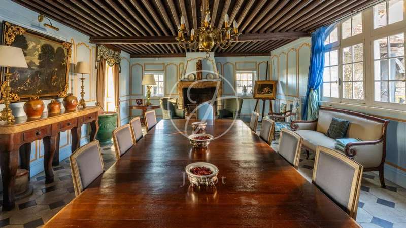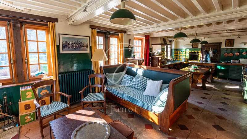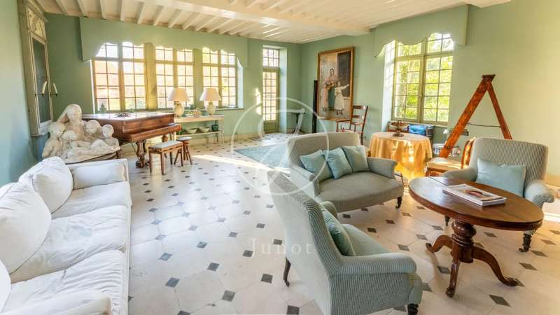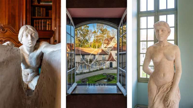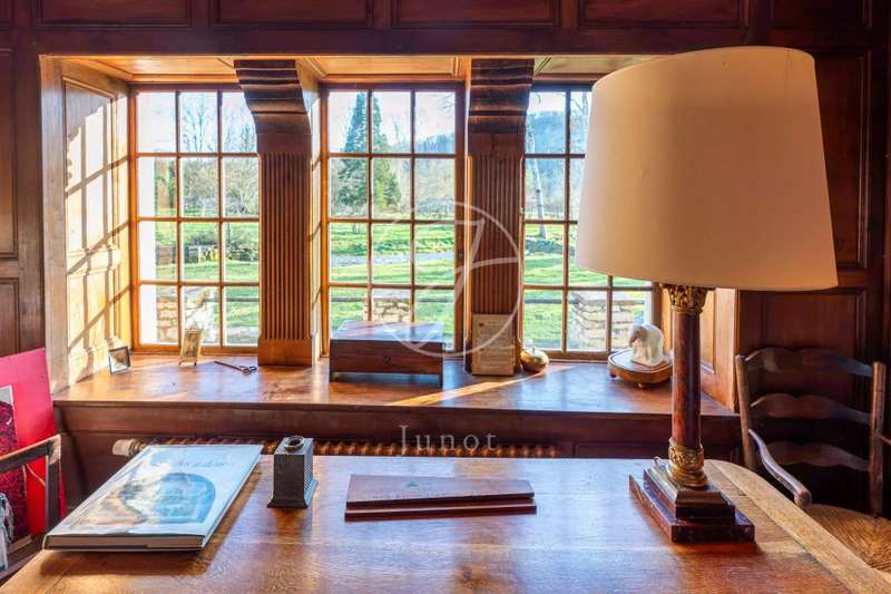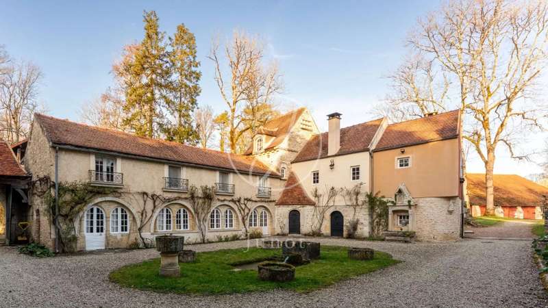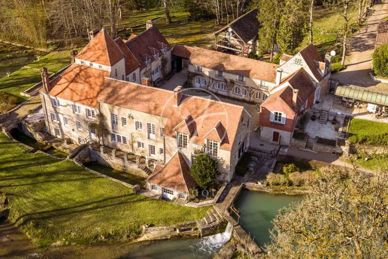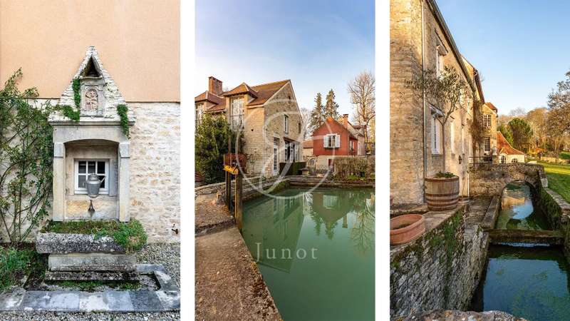 Le Moulinot is an old mill on the tributaries of the Cure, the oldest parts of which date back to the late Middle Ages and were converted into a manor house in the 16th century. The estate has always been at one with water: its reservoir forms a small lake, feeding both the mill, now a turbine that supplied electricity to the village, and the numerous ponds that transformed it, for a time, into a fish farm. Crossed by 4 private streams, the estate is a masterpiece of hydraulic engineering, which has been transformed into a magical aquatic setting. First a holiday home, then the main residence of the family that has lived here for almost 50 years, it extends over more than 7 hectares of parkland covered with century-old trees and surrounded by high, steep wooded hills that guarantee its privacy. A MASTER'S HOUSE of over 500-sqm This is a residence of great elegance and subtle discretion. It comprises a large central square, which houses the 2 main buildings, the Grande Maison and the Pavillon. A large porch leads into the Cour d'Honneur, adorned with a small fountain, which separates the two houses, each guarded by its central tower. The Grande Maison houses all the ceremonial rooms, as well as 4 magnificent suites with a total of 8 bedrooms, each decorated in a different colour. The most emblematic rooms include - the Dining Room, with its sideboard for cutting up hunting trophies, its huge fireplace for roasting them and its banqueting table for savouring them; - the Music Room, which is reflected in the water of the lake and has kept its majestic piano for private concerts; - the Writing Room, all wood panelling with a view over the park and the waterways; - the Tower Library, with a solid oak mezzanine from which you can enjoy aerial views over the Cour d'Honneur. ? The interior of the Grande Maison showcases all the great architectural and decorative traditions of Burgundy: the Burgundy flagstones adorned with cabochons that decorate the reception rooms, the ashlar fireplaces, the sculpted ch?ne bays, the many Puisaye potteries and the omnipresent Saint-Jacques shell, which bears witness to the pilgrimages to Vezelay and then Compostela. Opposite the Grande Maison is the Pavillon, a self-contained dwelling with all the comforts of a cosy home, including a large living room, 3 bedrooms (one of which is in a tower) and a south-facing garden terrace where you can eat outside almost all year round. Immediately adjacent to the main building are - an artist's studio that was used as a painting and sculpture studio - some of these sculptures, such as the Lady of the Lake, are still in the house. - the outbuildings, which housed 2 large stables for walks in the surrounding hills, full of trees and game. THE MAGIC OF WATER But above and beyond the character of this grand residence, the river and its waterfalls, the Fontaine aux 10 Lions and the Serpentine flowing over the granite pebbles of its mossy bed. Herons and wild ducks still frequent the house and fish in its fish-filled streams. In particular, the 3-metre-deep Gouffre offers a refreshing dip all summer long. The garden has been laid out so that you can live outside and enjoy the magnificent light every season. The large field is ideal for large flambées at sunset, while enjoying delicious snacks and wines from the surrounding valleys. Vézelay and its Eternal Hill, a UNESCO World Heritage Site, are just a few kilometres away. There is still much to discover here, but just as much to invent
