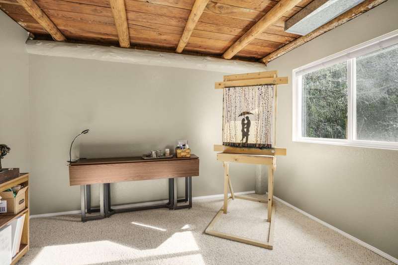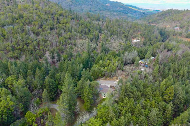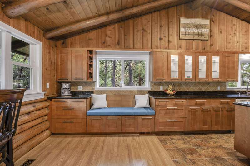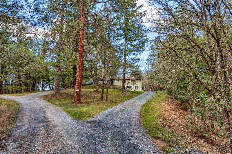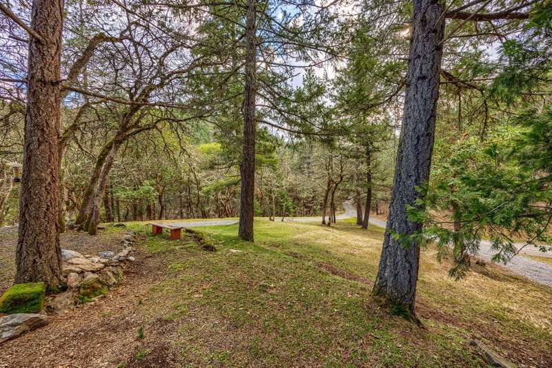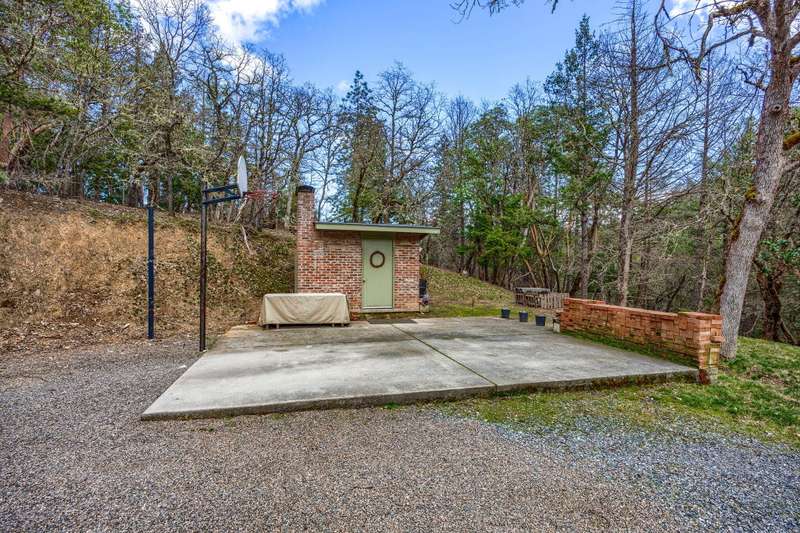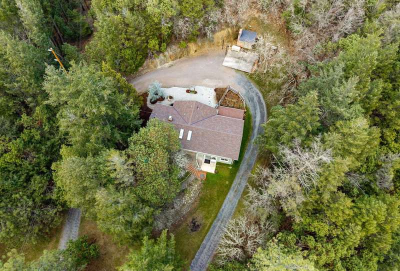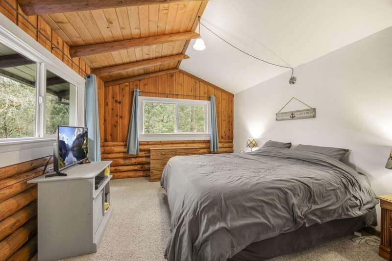 Welcome home! This inviting property sits on over 11 wooded acres, offering privacy with low maintenance. Just minutes from the sought-after town of Jacksonville, the location blends tranquility and convenience. Inside, enjoy a vaulted living room with exposed beams, wood-burning fireplace, and skylights that fill the space with natural light. The remodeled kitchen features granite counters, custom cabinetry, electric range, pantry, and built-in bench seating. Two bedrooms on the main level plus two more downstairs offer flexibility. The lower level includes a second living area and separate entrance—ideal for guests or multi-gen living. You'll love the warm mix of logs and wood accents throughout. A circular driveway and ample parking accommodate all your toys. Bonus: a charming brick detached storage building adds extra space. This home is a perfect blend of comfort, character, and convenience.