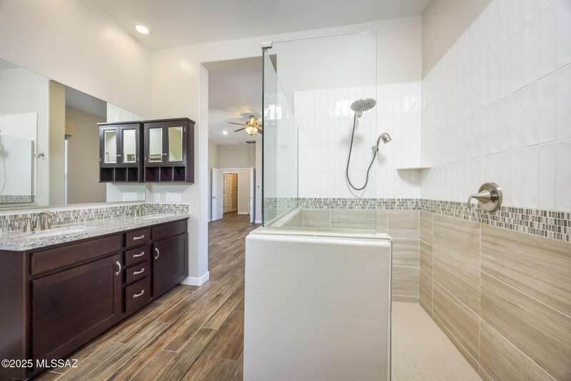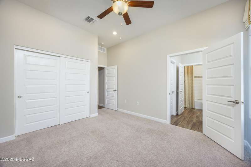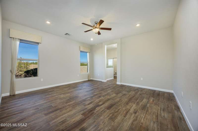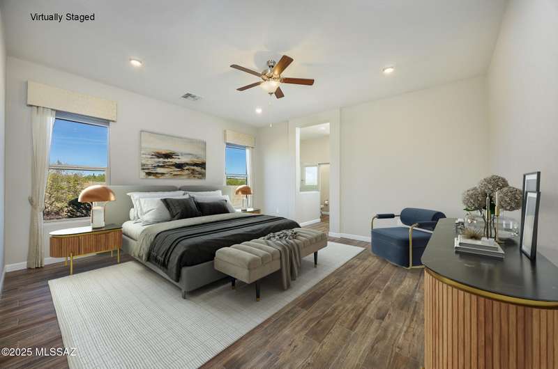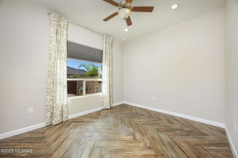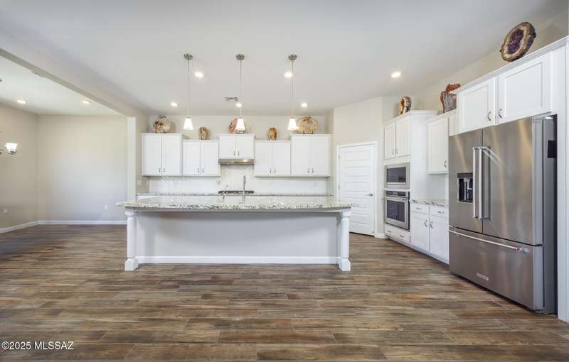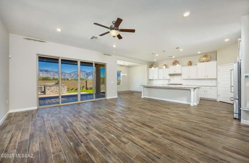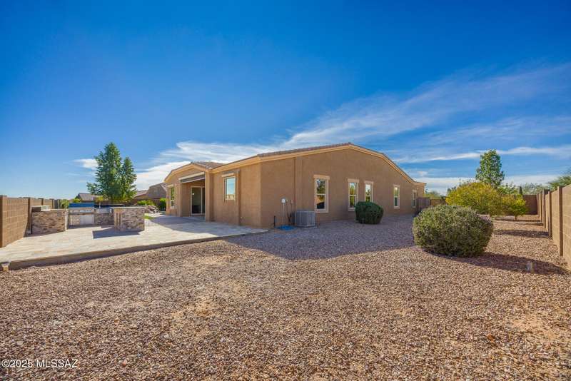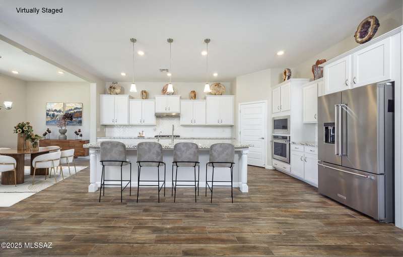 Gorgeous D.R. Horton former model home w/ breathtaking views of Pusch Ridge! Beautifully designed 2,534 sq.ft home offers 4 BR 3 BA & flex room on a spacious .295 acre lot. A light-filled foyer opens to a spacious greatroom which flows to a covered patio w/double sliders. Enjoy 10 ft ceilings, custom paint & designer window coverings. The chef's kitchen features an oversized center island, gas cooktop, convection oven, farmhouse sink, granite c'tops,42'' cabinets, pendant lighting & walk-in pantry. The spacious primary suite boasts double-door entry, luxurious bath w/oversized shower & garden tub w/fabulous views.Rolling shutters in primary bath, dining area & patio. The resort-style backyard includes a heated pool w/water feature, lagoon, 3 swim-outs, outdoor kitchen w/BBQ. Spa.
