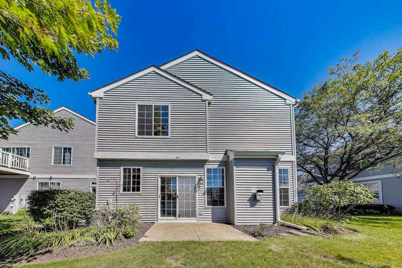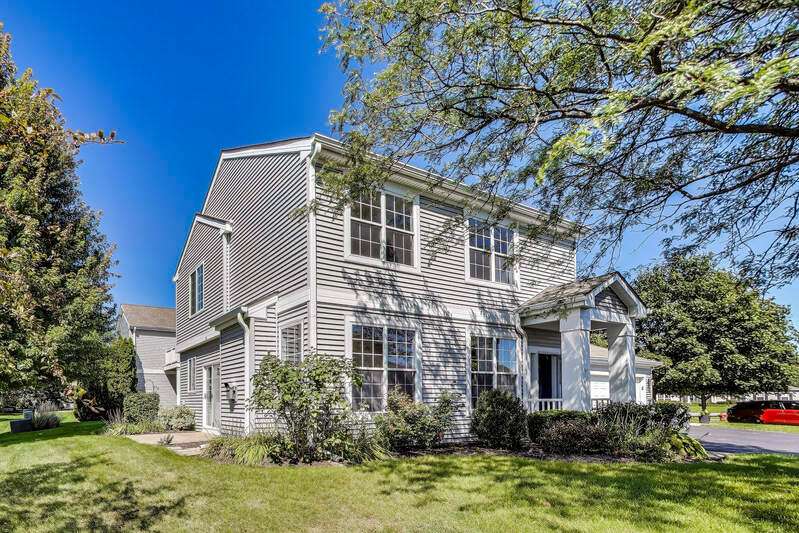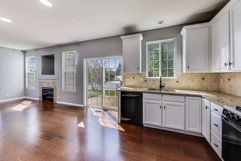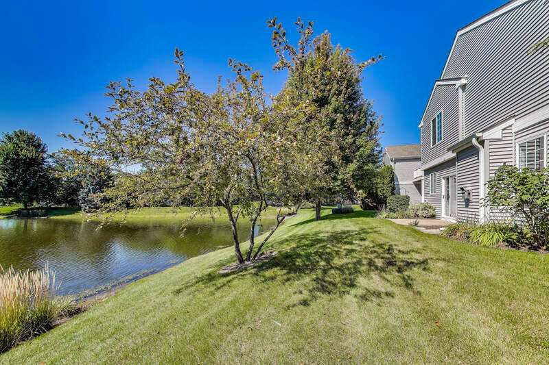 Rarely available end-unit townhome in highly desirable Winding Waters Subdivision with breathtaking water views! This 2 bed, 2.5 bath home offers a bright, open layout with modern updates throughout. Main level features Brazilian cherry hardwood floors, freshly painted interior, and spacious eat-in kitchen with custom oak cabinetry, granite countertops, stone backsplash, and updated white cabinets. Sliding doors open to private patio with serene water views. Family room with gas fireplace and marble surround plus soaring living room with vaulted ceilings. Upstairs includes large primary suite with walk-in closet and en-suite bath with double vanity and soaker tub. Versatile loft can be 3rd bedroom, office, or flex space. Recent updates: new vinyl flooring (stairs & upper level), interior doors painted, newer light fixtures, new garage door motor. Exterior improvements: new roof, siding & driveway (2021). Maintenance-free living with private backyard oasis, great schools, conveniently location, close to shops restaurants.