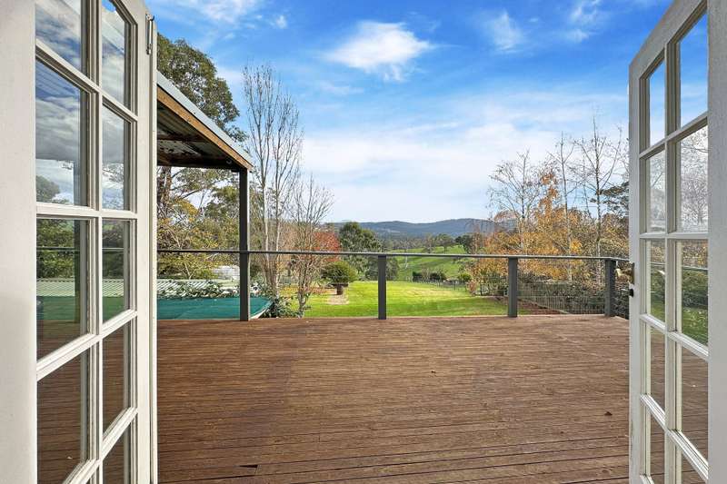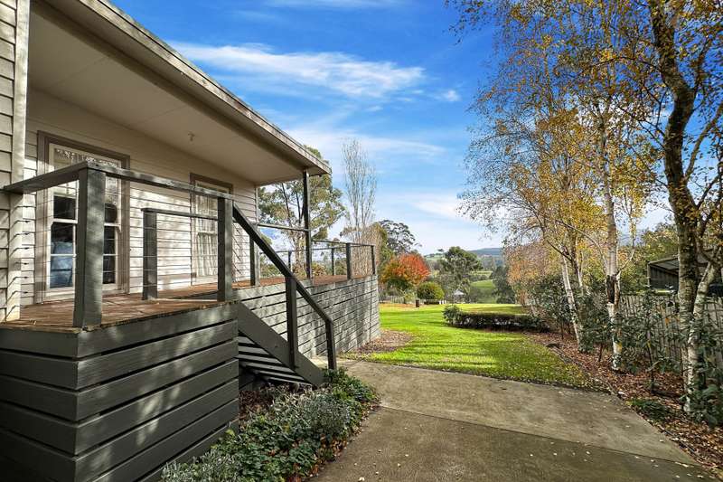Superbly positioned close to town and showcasing character features, we invite you to inspect this charming property that enjoys a breathtaking panorama in stunning private garden surrounds. Afforded a high level of privacy with screening brush fencing, established gardens provide entry to this delightful weatherboard residence. Enter via the covered verandah and step onto polished timber flooring where the functional floorplan offers 3 cosy bedrooms, main bathroom, laundry and kitchen with stainless steel appliances, upstand bench and 4 door pantry. The spacious open plan living arrangement offers a stunning vista and is complete with gas log fire, spilt system and French doors. Entertaining is an absolute pleasure on the elevated and expansive decked verandah, overlooking extensive landscaped surrounds on a sizeable 2018m² (½ acre) allotment. Under house storage, garden shed and concrete driveway with room for 2 cars further complement this very impressive and neatly presented property.