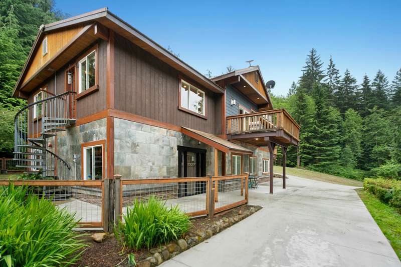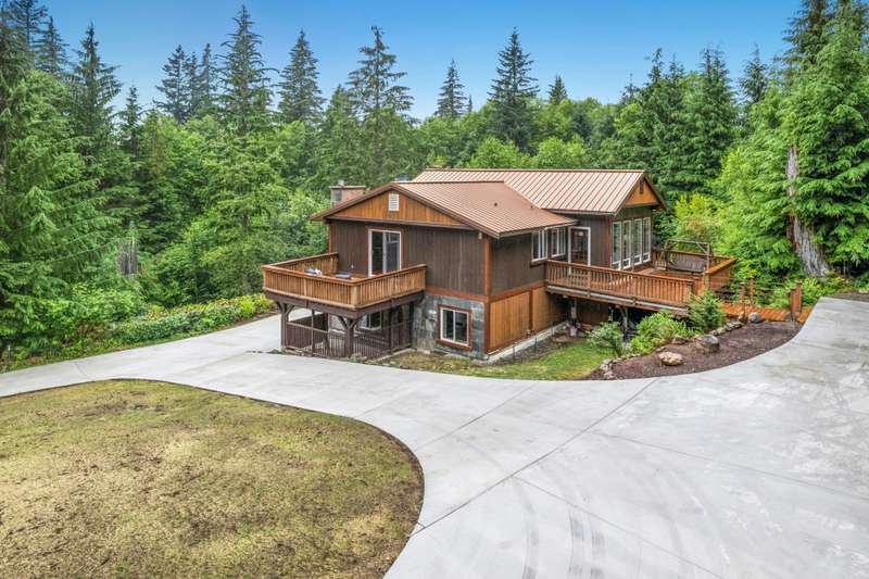 A world full of country hush, minutes from Iss/Hobart Rd, destination – a tranquil, private, sun kissed 2.05 aces, outlined by towering evergreens creating a cocoon of luxurious solitude. A beautifully crafted home meticulously cared for, w/two levels of independent living, perfect for extended living or extra income. Great room living on each floor, upper level w/vaulted ceilings, exhibition, island kitchen, den/office with murphy bed, sumptuous primary suite with spa bath, an entertainment sized deck taking in the natural beauty of the grounds & surroundings! The lower level lives large w/two additional bedrooms & its own separate entry. This truly gets you away from it all, miles of trails are nearby. You’ve found your special retreat!