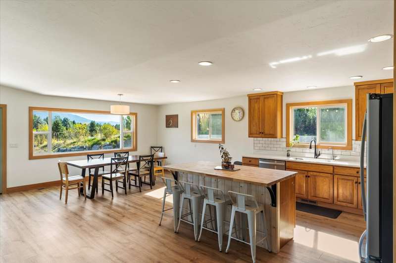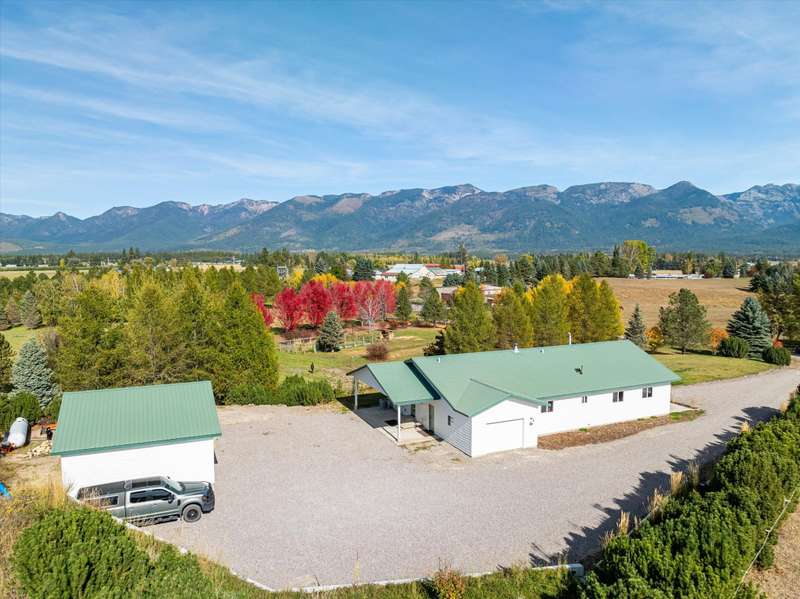 Stunning Swan Mountain Views! This beautifully updated 3-bedroom, 3-bathroom home sits on 10 peaceful acres, offering breathtaking views and endless possibilities. The home boasts a fully remodeled master suite with a tile shower and dual vanities, along with two cozy wood-burning fireplaces perfect for Montana's cooler months. The updated kitchen features new appliances and countertops, making it a chef's delight. Outside, enjoy a fenced garden, garden shed, new tree house and a 592 sqft timber framed workshop with additional 368 sqft covered storage. A spacious detached shop offers an additional workspace and a lean-to for extra storage or projects. A perfect blend of comfort and functionality! Shop is plumbed for a propane heater.