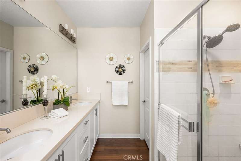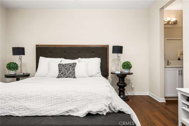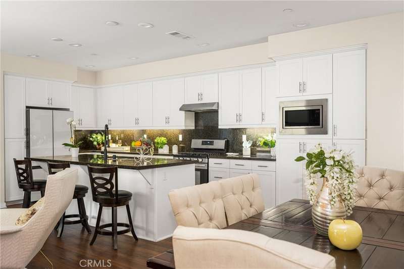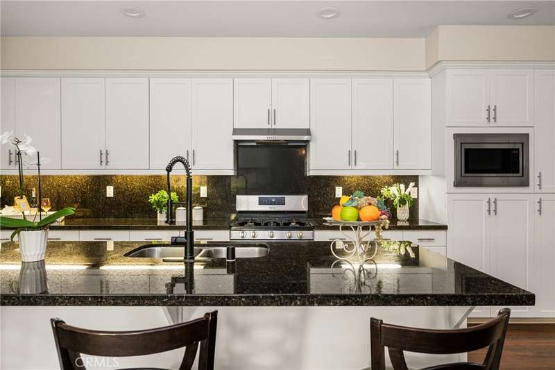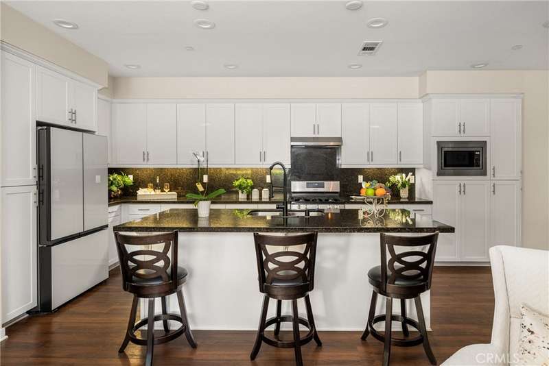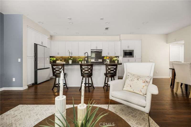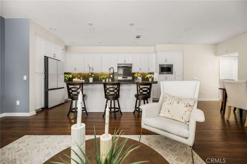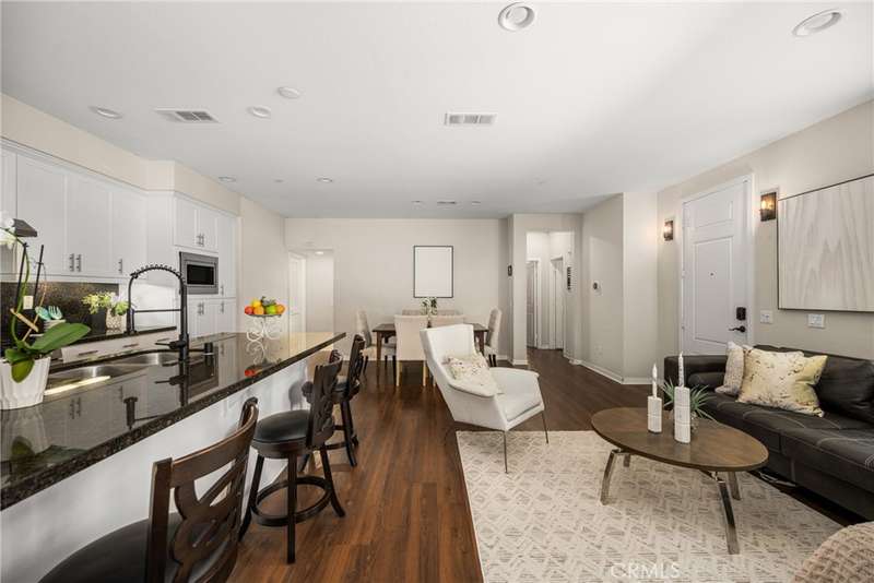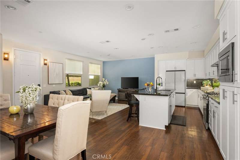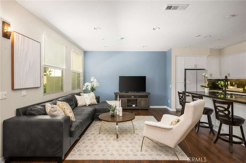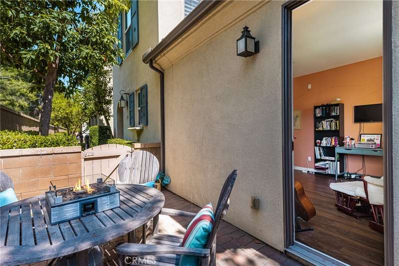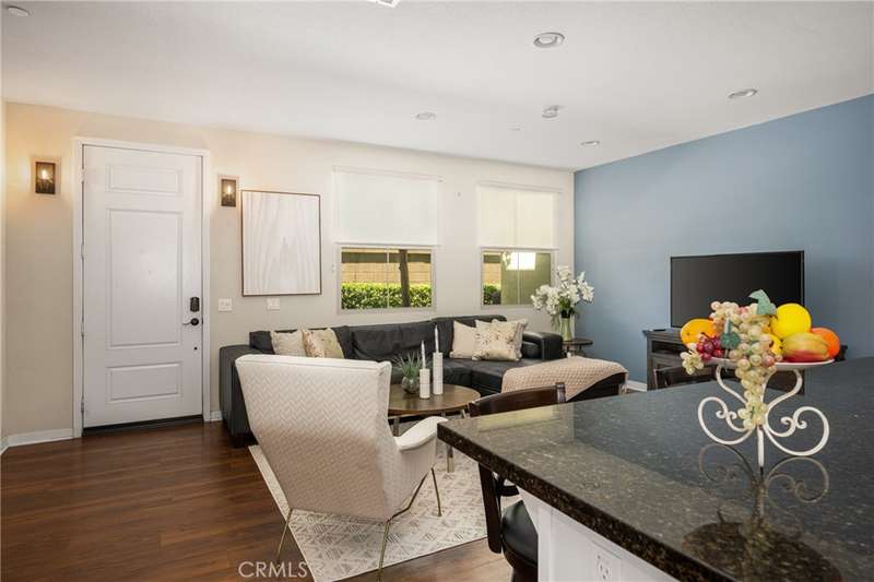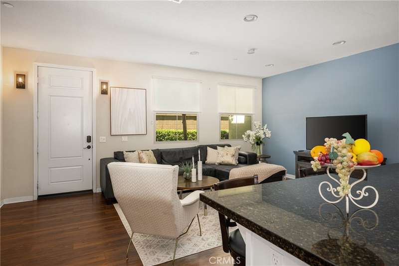 Welcome to this beautifully upgraded end-unit Smart Condo with townhome-like features, perfectly situated in the sought-after Agave community of Portola Springs. This residence offers refined California living on a quiet, tree-lined street, with a layout that blends comfort, style, and function. The open-concept main living space is filled with natural light, featuring rich hardwood floors, custom window treatments, and an inviting ambiance. The gourmet kitchen boasts granite countertops, high-end Bespoke Samsung appliances, a large center island, and abundant cabinetry--perfect for culinary enthusiasts and entertaining alike. A downstairs bedroom and full bath provide flexibility for guests or a home office, while upstairs, the spacious primary suite offers a generous walk-in closet, dual vanities, and a sleek walk-in shower. Additional highlights include Smart Home technology, an EV charger, central heating and cooling, in-unit laundry, and an attached 2-car garage. Enjoy a private gated patio for outdoor dining or relaxation, and take advantage of the community's resort-style amenities--pools, parks, and scenic trails. Located minutes from the Great Park, Irvine Spectrum, Woodbury Town Center, and award-winning Irvine Unified schools, this home delivers the perfect balance of luxury, location, and lifestyle.