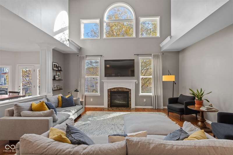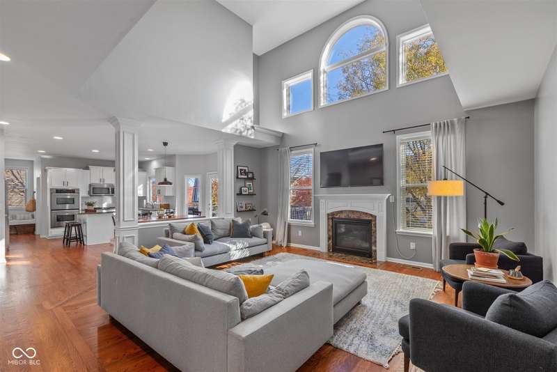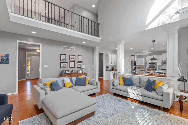 Pride of ownership shines throughout this exceptional 5-bedroom, 3-full-bath home perfectly situated on a lovely lot with mature landscaping. Built by Drees and meticulously maintained by its original owner, this property offers timeless quality and thoughtful design at every turn. Step inside to find gorgeous hardwood floors flowing through much of the main level and a dual staircase that offers convenience in its design. The spacious chef's kitchen features double ovens, stainless steel appliances, generous counter space, and an open layout ideal for cooking and entertaining. The inviting family room with soaring ceilings, gorgeous gas fireplace, huge windows and tons of natural light, elegant dining area and flexible main floor spaces create the perfect blend of comfort and sophistication. Main floor features a good sized den/library for a home office or quiet living room plus a main floor bedroom perfect for guests or even an extra play space or home office. Upstairs boasts 4 generously sized bedrooms including a luxurious primary suite with ample dual closets and a beautifully updated bath. The large unfinished walkout basement provides endless possibilities for future expansion. Plumbed for a full bath, this space could be great for a home theater, recreation area or additional living space. Enjoy evenings on the serene front porch or out back overlooking the peaceful yard. The three car side load garage offers both convenience and curb appeal. A fabulous deck with covered patio below, the backyard is truly a lovely retreat. With numerous updates and an impeccable level of care, this home is truly move-in ready. With schools within walking distance and shopping and all the conveniences close by, don't miss this gorgeous home in the popular neighborhood of West Haven at Noble West.