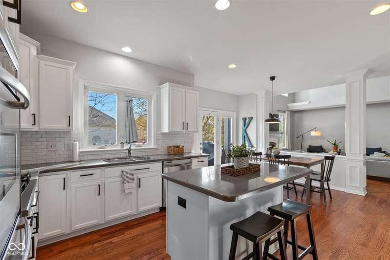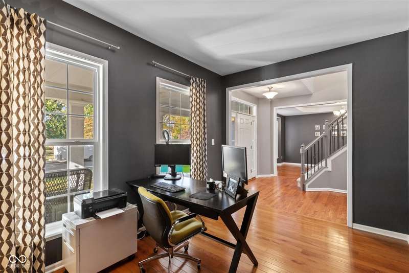 Pride of ownership shines throughout this exceptional 5-bedroom, 3-full-bath home perfectly situated on a lovely lot with mature landscaping. Built by Drees and meticulously maintained by its original owner, this property offers timeless quality and thoughtful design at every turn. Step inside to find gorgeous hardwood floors flowing through much of the main level and a dual staircase that offers convenience in its design. The spacious chef's kitchen features double ovens, stainless steel appliances, generous counter space, and an open layout ideal for cooking and entertaining. The inviting family room with soaring ceilings, gorgeous gas fireplace, huge windows and tons of natural light, elegant dining area and flexible main floor spaces create the perfect blend of comfort and sophistication. Main floor features a good sized den/library for a home office or quiet living room plus a main floor bedroom perfect for guests or even an extra play space or home office. Upstairs boasts 4 generously sized bedrooms including a luxurious primary suite with ample dual closets and a beautifully updated bath. The large unfinished walkout basement provides endless possibilities for future expansion. Plumbed for a full bath, this space could be great for a home theater, recreation area or additional living space. Enjoy evenings on the serene front porch or out back overlooking the peaceful yard. The three car side load garage offers both convenience and curb appeal. A fabulous deck with covered patio below, the backyard is truly a lovely retreat. With numerous updates and an impeccable level of care, this home is truly move-in ready. With schools within walking distance and shopping and all the conveniences close by, don't miss this gorgeous home in the popular neighborhood of West Haven.