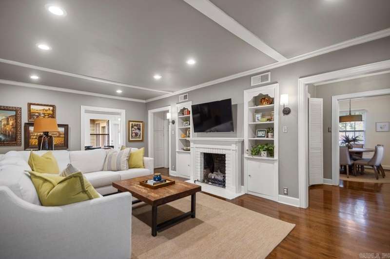 A happy Heights cottage with all of the charm AND all of the upgrades. This wonderful home has ample room for all- two nice sized bedrooms on the main level and then another bedroom and large bonus room upstairs (perfect for additional bedroom or playroom). Two living rooms on main level as well as a sunroom and separate dining room. The outdoor covered patio off the back den offers even more space for entertaining- with a fireplace, TV and room for large table, this space opens to the newly turfed backyard. Easy access to the Heights and Cantrell make this an easy spot, but backing up to the Normandy neighborhood with tons of green space and tree canopy make it truly special. Off street parking, Forest Park school district. Come see!