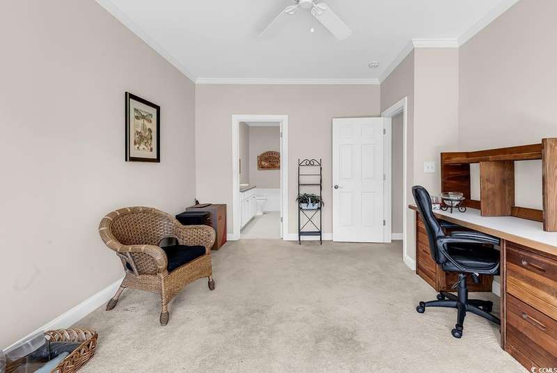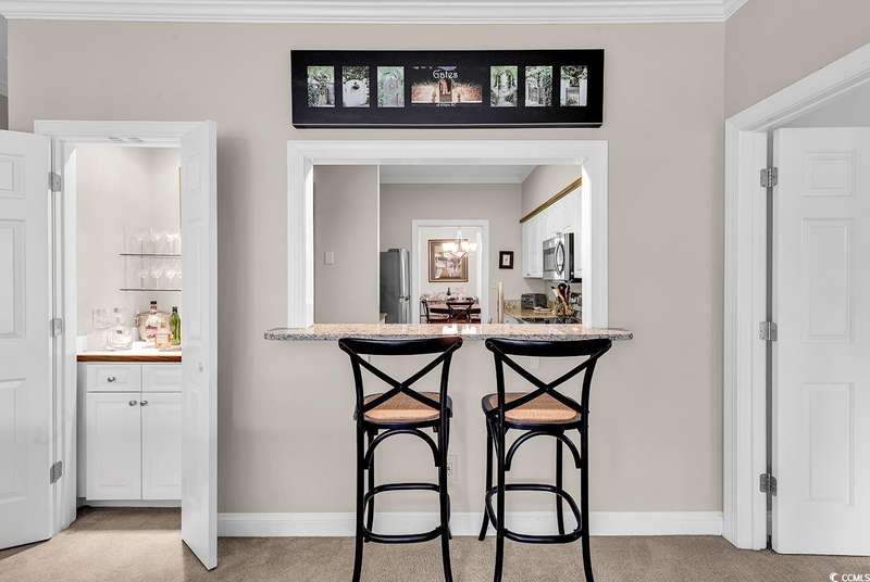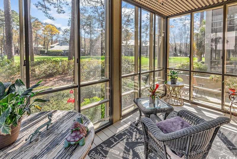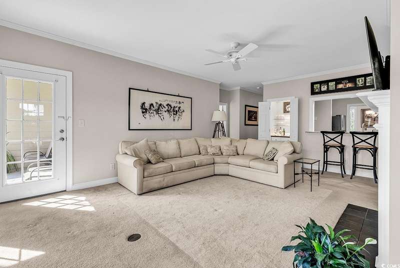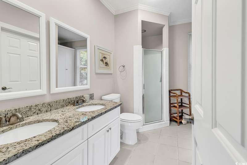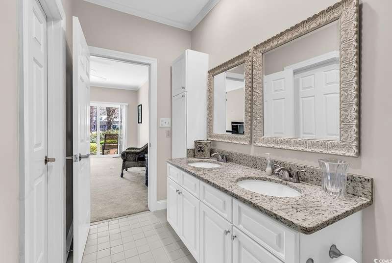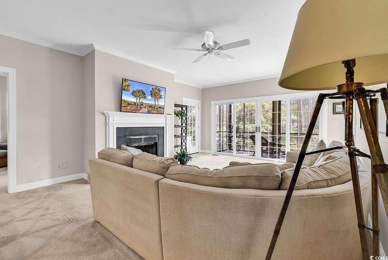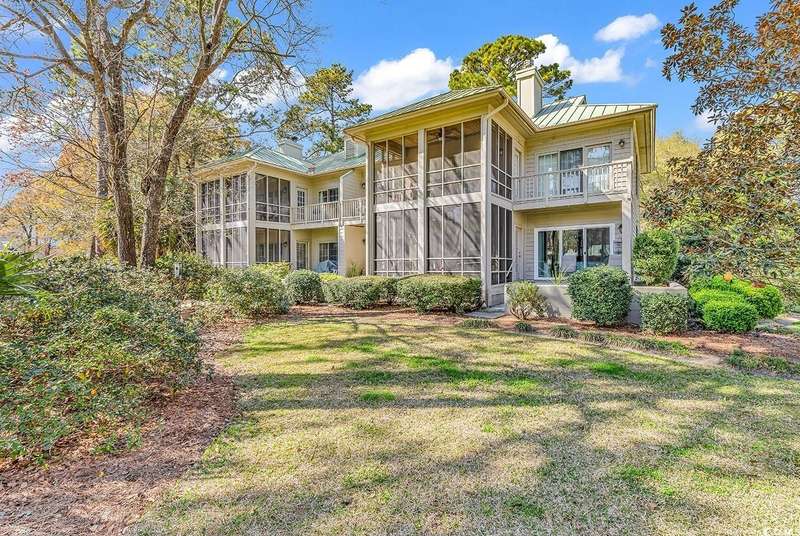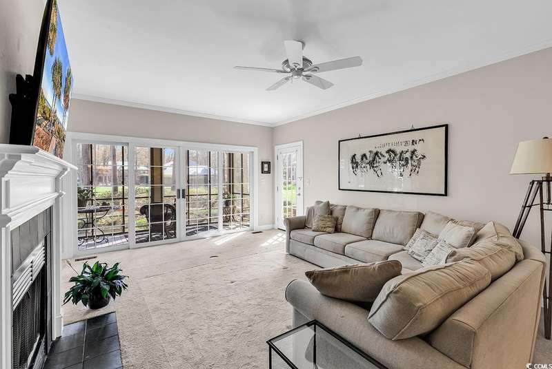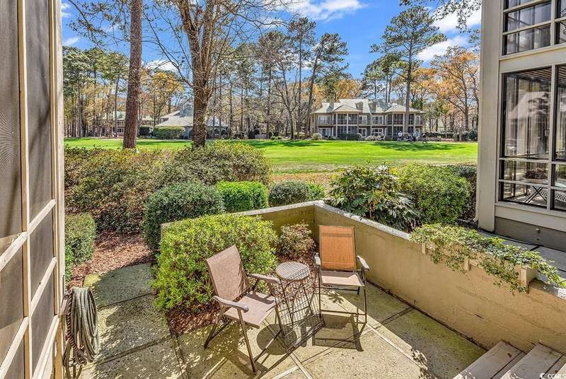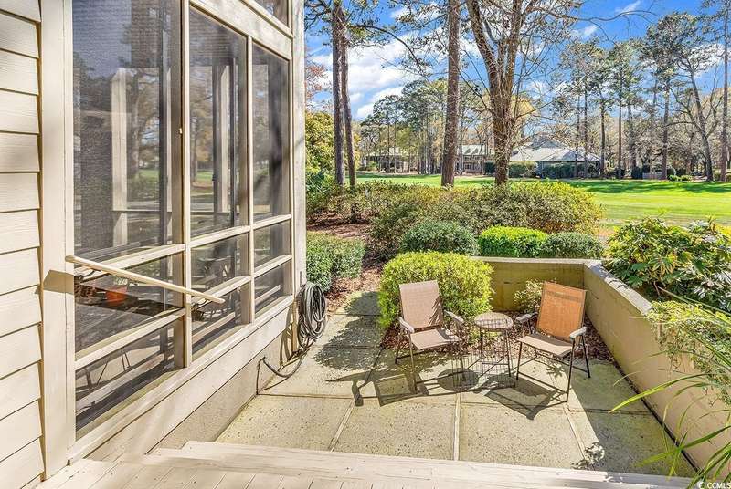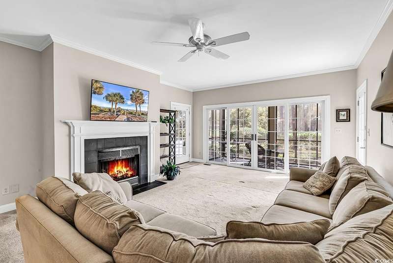 This beautiful condo has it all! Two primary suites both with walk in closets, and large bathrooms and whirlpool tubs (one tub has cabinets built over it but can be removed). Large great room with a fireplace, gas logs, and wet bar. The kitchen has white granite countertops and Samsung stainless appliances. The screened porch has magnificent views of the 9th fairway and is the perfect place to relax. There are also two patios off of each bedroom. Different memberships are available to all homeowners. No short-term rentals are allowed.