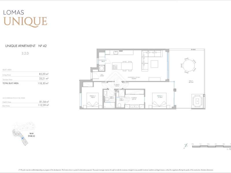 Lomas Unique is a new luxury development located in the El Higuerón area of Fuengirola, just a stone's throw from the Mediterranean Sea and with perfect weather all year round, making this the ideal setting for enjoyment and relaxation. This second floor apartment has been meticulously designed to deliver the perfect blend of elegance and functionality with great attention to detail. It covers 85 m² of interior space plus a 33 m² terrace. The apartment has an open-plan living, dining and kitchen area, followed by two bedrooms and two bathrooms. Luxury features in these exclusive residences include excellent jacuzzis on the terraces, stunning panoramic views and high-end fixtures and finishes throughout. The kitchens, fully equipped and furnished with cabinets from the Lube brand and Dekton countertops from Cosentino, offer a functional and elegant space. High-quality appliances from brands such as Electrolux ensure functionality and style in everyday life. The bathrooms, which are elegant and modern, feature sanitary ware from prestigious brands like Duravit and Hansgrohe taps. A dryer and washing machine will be installed in the laundry room. Sustainable materials and methods have been used that reduce CO2 emissions, provide real thermal insulation, and minimise energy consumption, all while preserving the environment. Communal amenities include a state-of-the-art gym with cutting-edge technology to cater for all fitness needs, and a sauna and spa to unwind at the end of a long day. There is a lounge where residents may enjoy gatherings with friends and family and co-working spaces for residents who work from home. The extensive landscaped areas and swimming pools with sun terraces offer outdoor spaces to enjoy the Mediterranean climate. What's more, the Higuerón Resort boasts exquisite sports facilities, a selection of high-end Michelin-starred restaurants and a luxurious spa and fitness centre. Please contact us for further information.