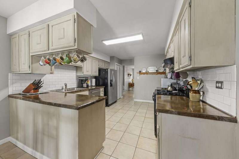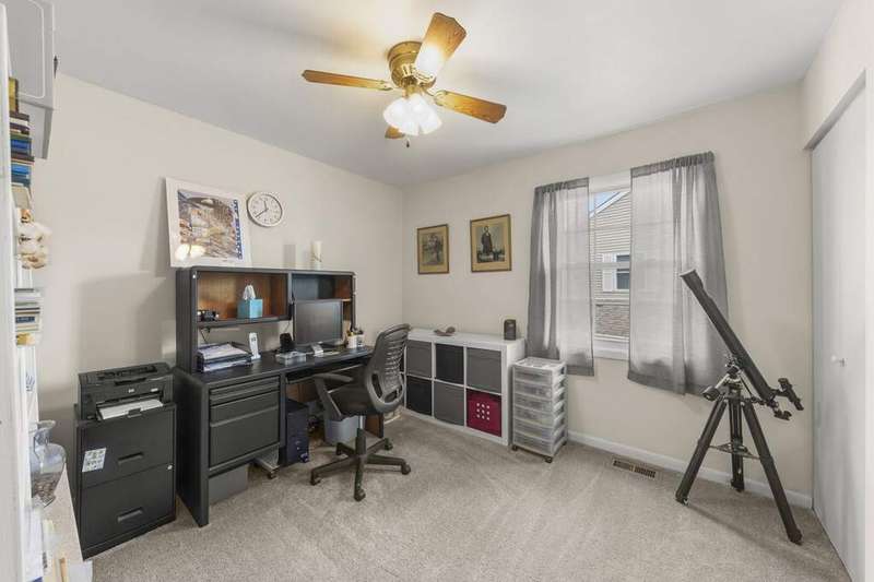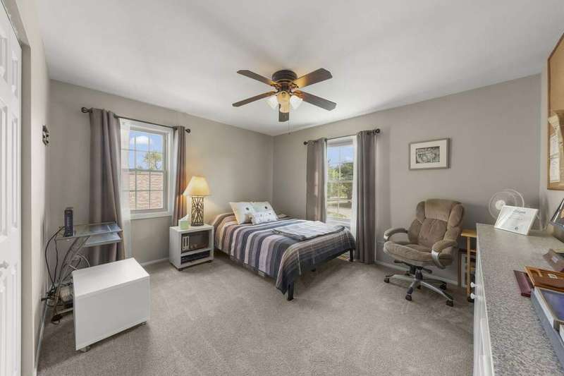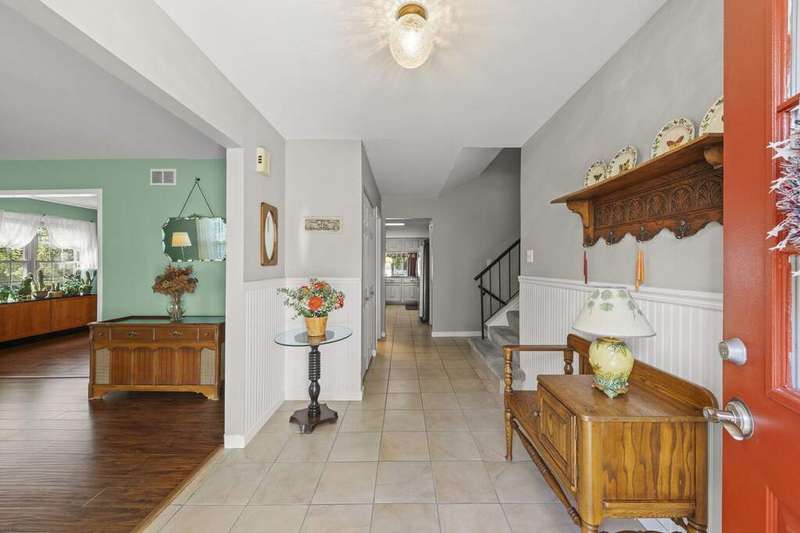 Tucked away on a quiet cul-de-sac, this tri-level home has been lovingly maintained by the same owners for over 40 years, showcasing true pride of ownership. The main level features a bright eat-in kitchen with a peninsula separating the dining area, ceramic tile flooring, and custom blinds. The kitchen flows into the living and dining rooms, both finished with wood laminate floors for easy care and timeless style. Just off the kitchen, an additional family room with carpeting offers a cozy retreat anchored by a wood-burning fireplace and built-in bookcases. Upstairs you'll find four bedrooms, including a spacious primary suite with a walk-in closet, double vanity, and walk-in shower. The second-floor bath has been beautifully remodeled, and new carpet runs throughout the upper level, complementing the neutral paint, six-panel doors, and plantation shutters. The lower level features a versatile recreation room with carpeting and plenty of space for gatherings, a playroom, or a home office. Off the kitchen, a charming three-season room opens to the expansive backyard-the true highlight of the property-perfect for relaxing, entertaining, or play. A convenient laundry room with custom vinyl tile flooring is located near the garage entry. Recent updates include a newer furnace, AC, and water heater; windows, and patio door; total roof replacement 2018 and a porch roof replacement in 2025; and newer appliances, including a Maytag washer and KitchenAid dishwasher (2023). An attached two-car garage completes the package. Close to award winning schools, shopping, dining, and I-80, this home offers a rare combination of comfort, thoughtful updates, and community in one of Frankfort Square's most desirable neighborhoods.