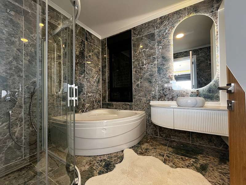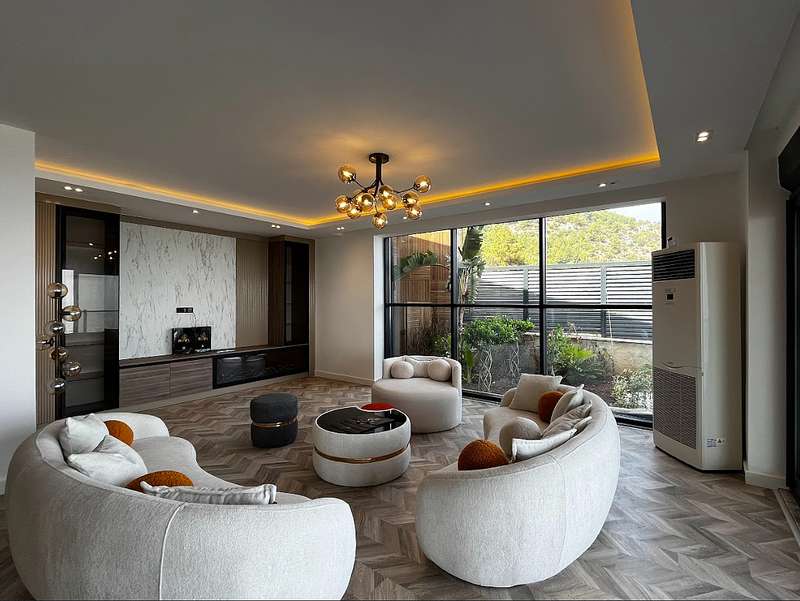 Built on a 1.637 sqm land area, the detached villas with 5 bedrooms consist of 3 blocks and are designed as 3-storey. There is a private outdoor swimming pool, private garden, sauna, Turkish bath, outdoor parking lot, generator, and security camera. Top-quality materials were used in the construction of the villas. On each floor, there is a bathroom, kitchen cabinets, a fireplace, a central satellite system, and electric blinds. They are also equipped with high-quality wood, ceramic tiles, and decoration materials.