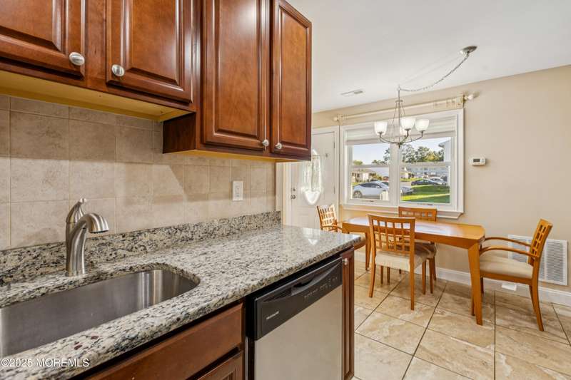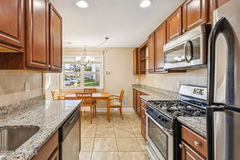 Welcome home to this lovely end-unit ranch-style condo in Cheesequake Village, an active adult community. Rebuilt from the ground up in 2014, this residence offers a modern, turnkey living experience. The gourmet kitchen features custom cherry cabinetry, granite countertops, stainless steel appliances, and ceramic tile flooring that continues through the hallway and full bath. Elegant custom moldings, upgraded interior doors, and durable luxury vinyl flooring enhance the overall design, creating a home that blends style and comfort seamlessly.